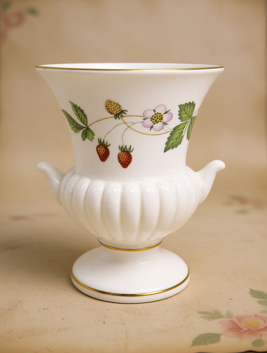 Главная // Интернет-магазин // Новинки // Винтажная вазочка Wedgwood "Wild Strawberry" из костяного фарфора с элегантным цветочным декором. Фарфор, деколь, позолота. Аглия.