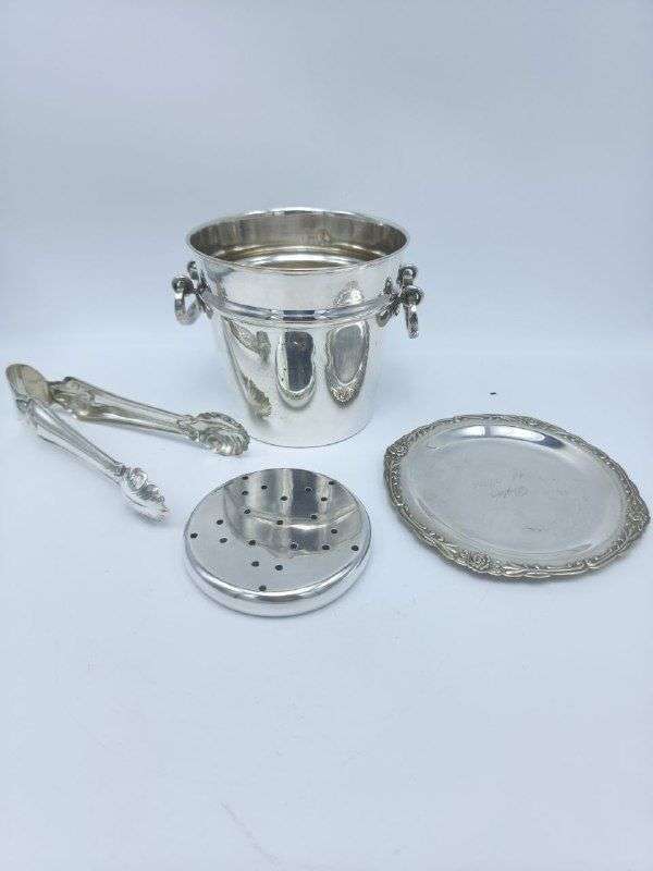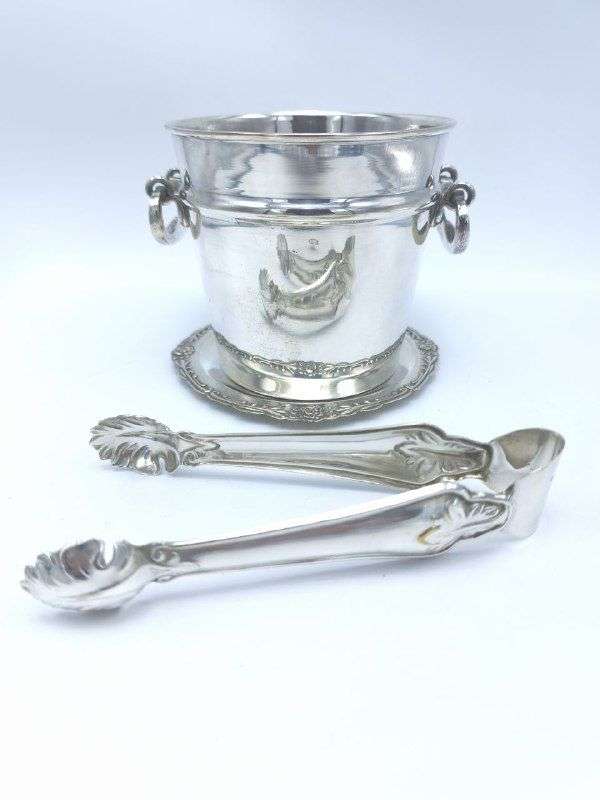 Винтажное ведро для льда со щипцами арт Деко с серебрением