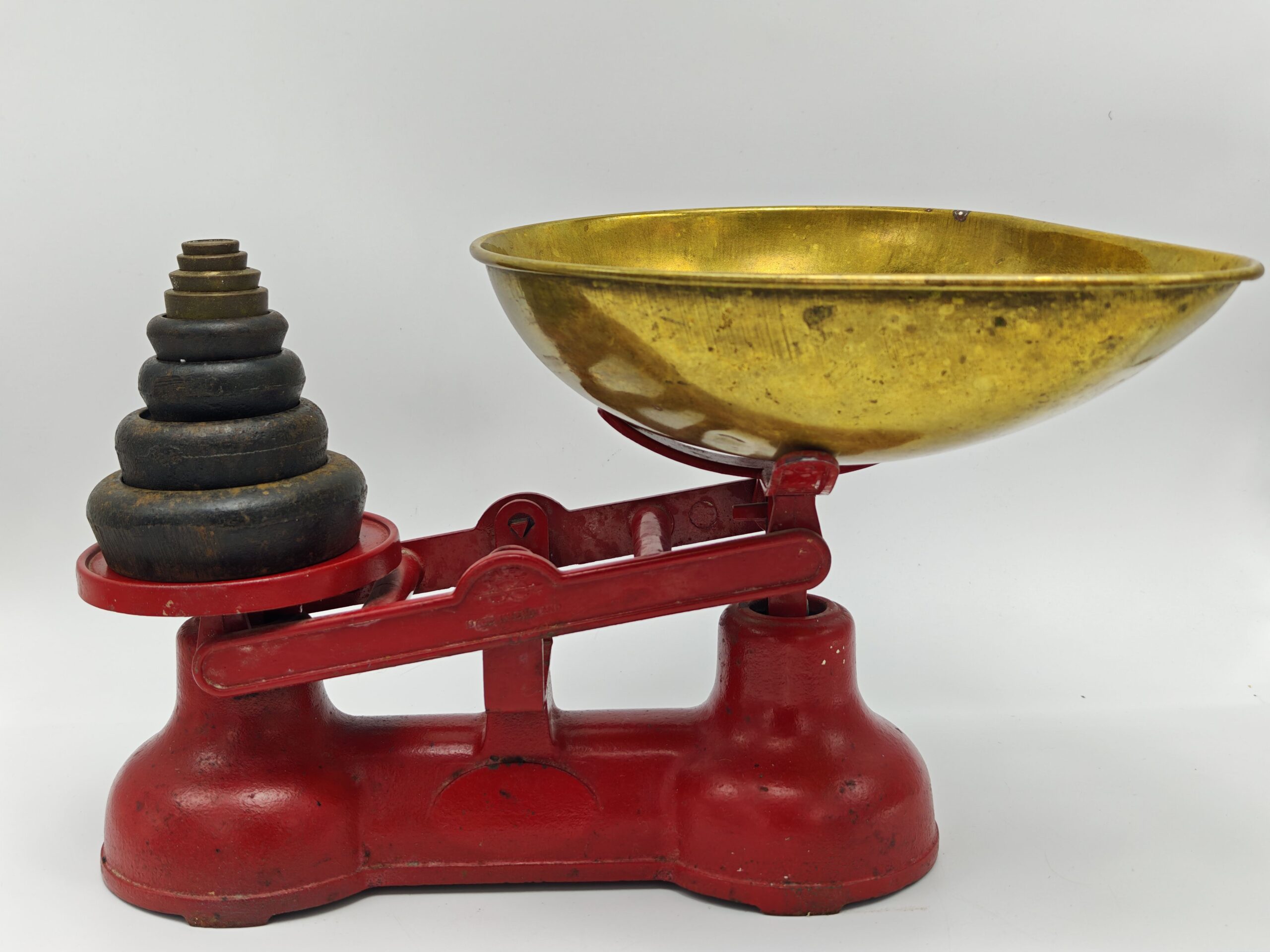 Винтажные кухонные весы с гирями. Англия. Чугун и Латунь