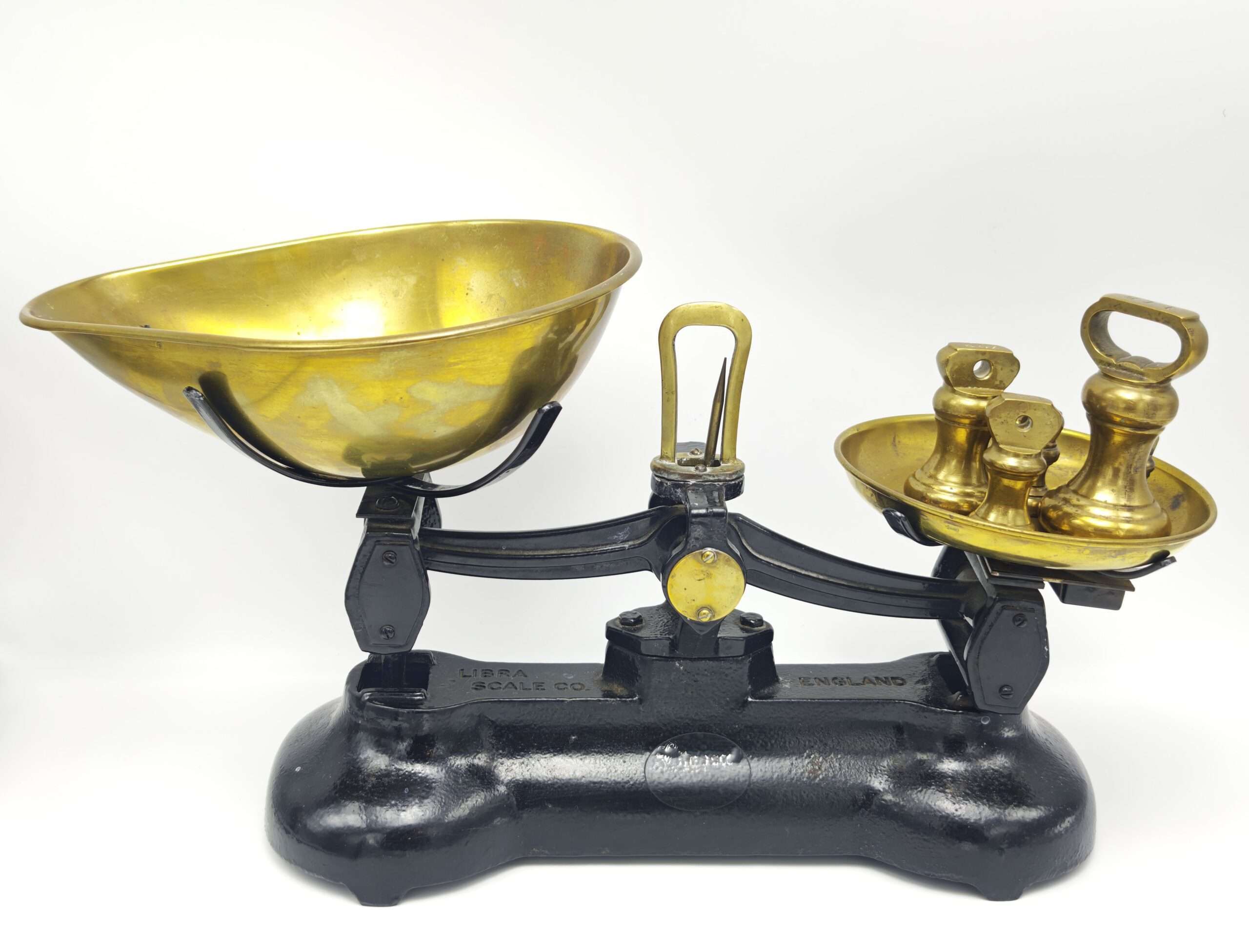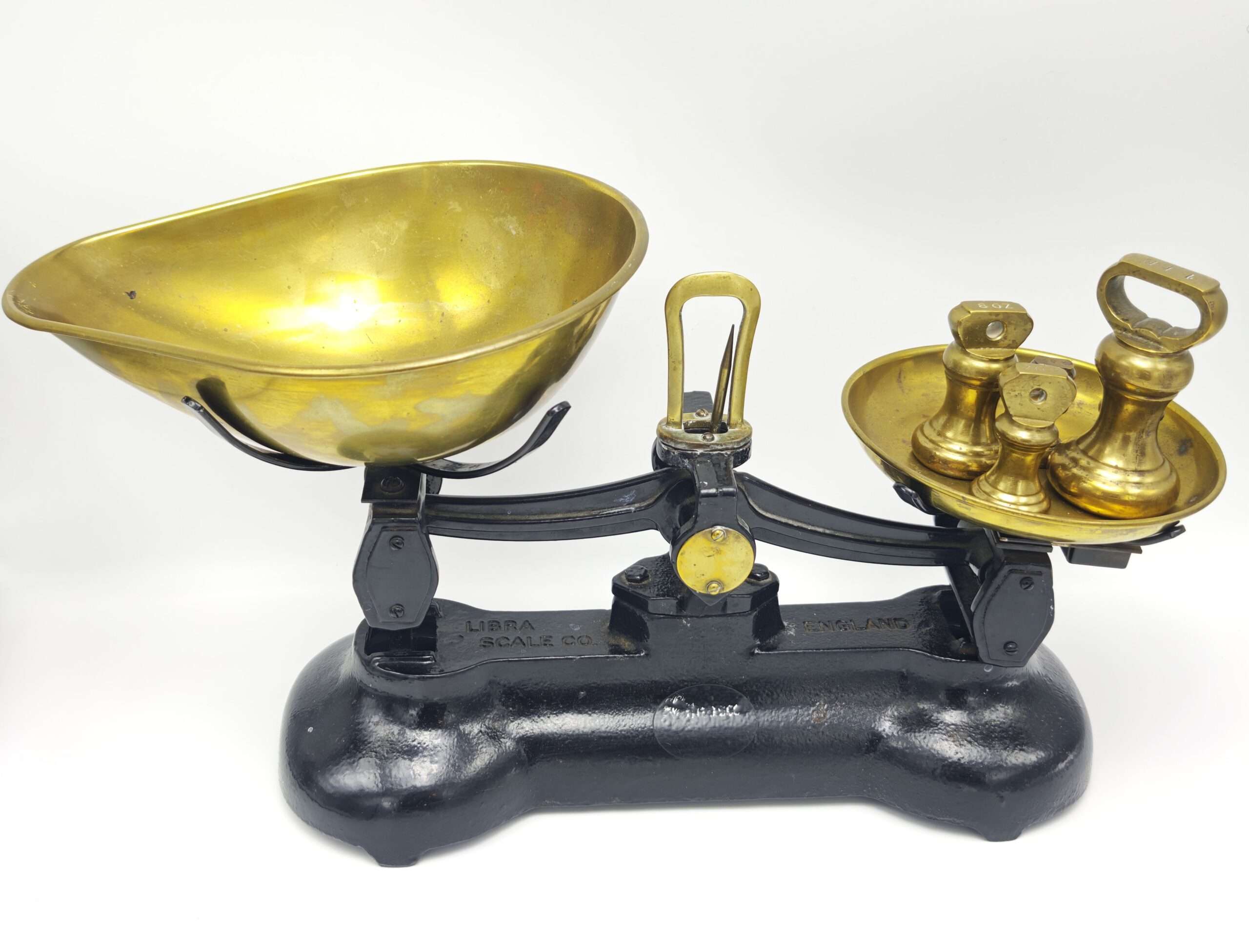 Винтажные кухонные весы Librasco с гирями. Англия. Чугун и Латунь