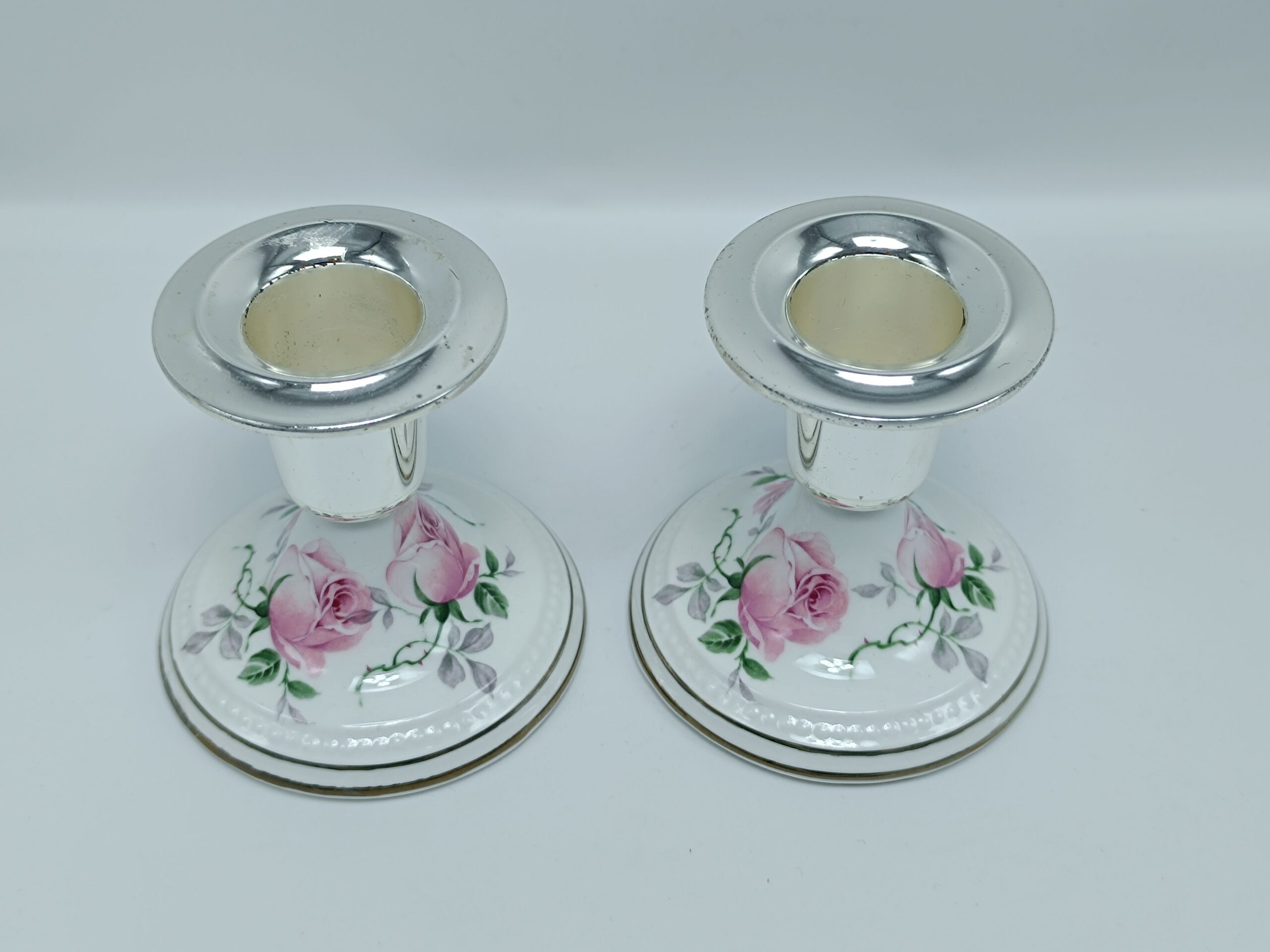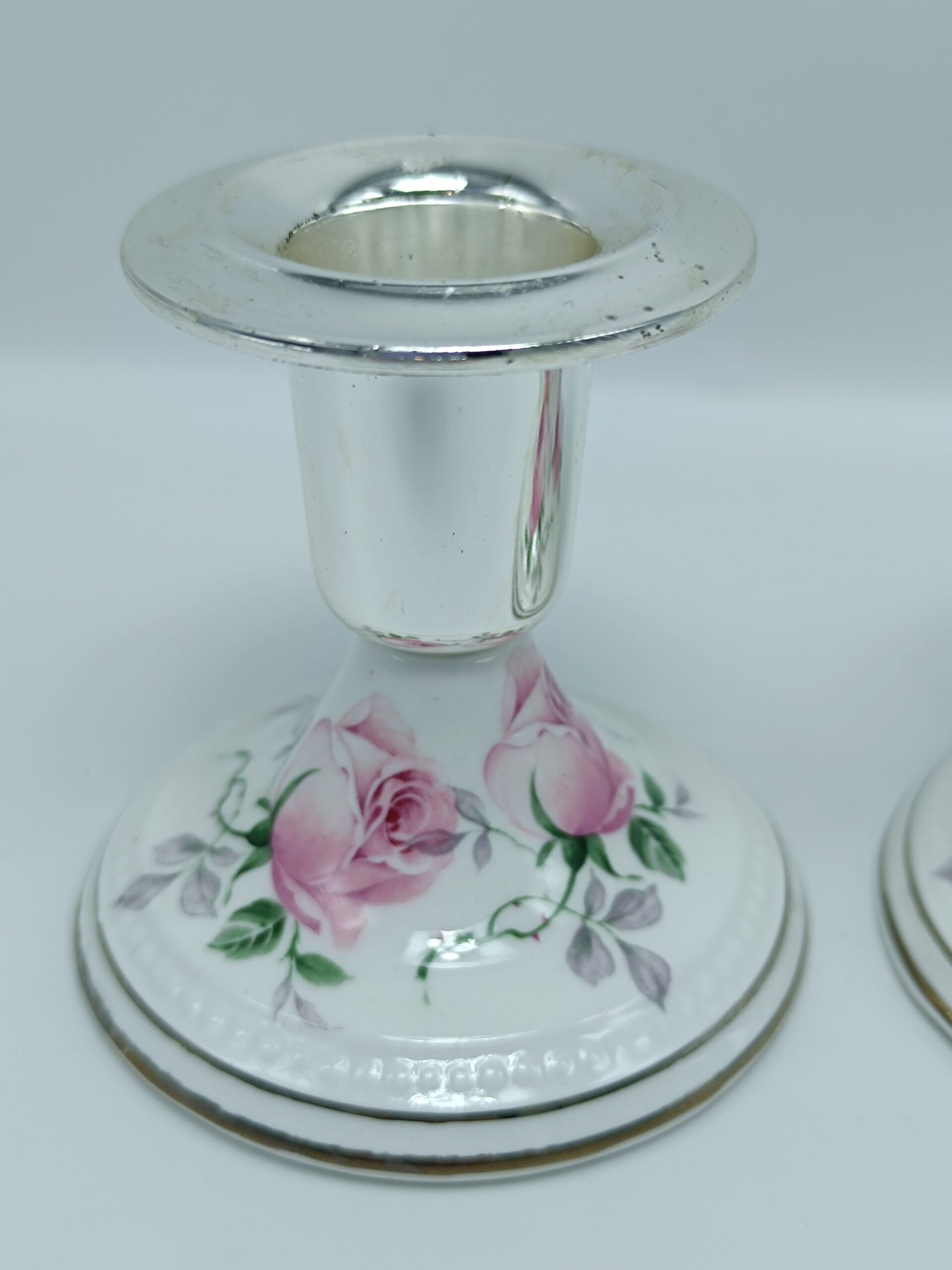 Винтажные подсвечники H.Samuel. Фарфор. Посеребрение. Англия вторая половина 20 века