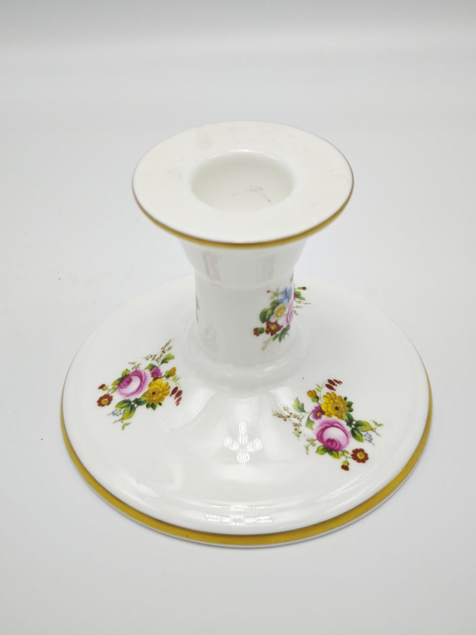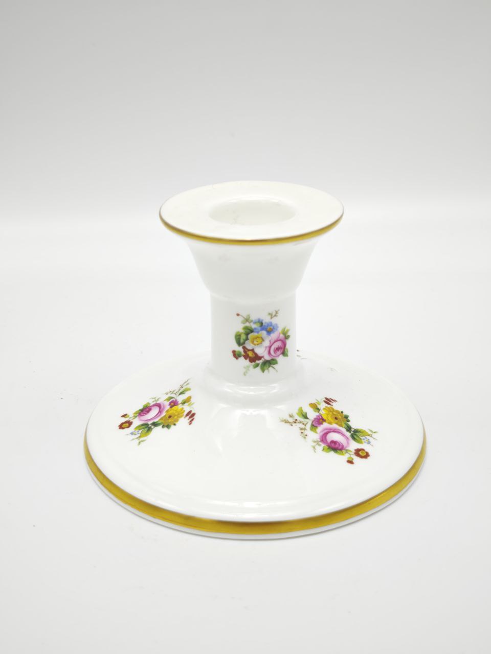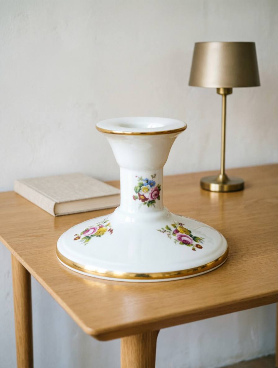 Каждая деталь — от нежных оттенков цветов до тонкой позолоты по краю — подчеркивает мастерство английских ремесленников. Подсвечник не просто функциональный предмет, а коллекционный артефакт, который украсит полку, комод или витрину в стилях классика, прованс или винтаж.