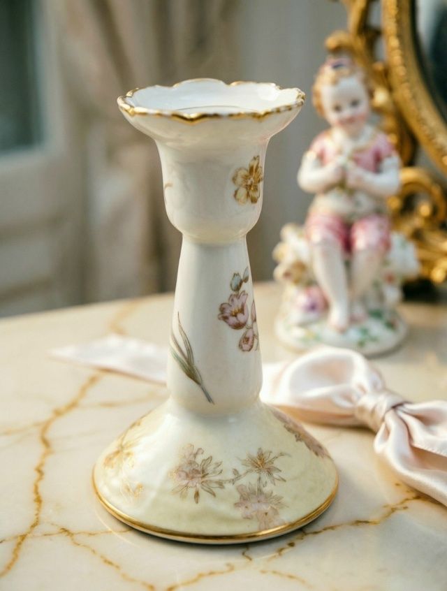 Изысканный винтажный подсвечник из белого фарфора от мануфактуры **G.D.&Cie Limoges** — представителя всемирно известной столицы французского фарфора. Элегантная форма с позолотой создаёт атмосферу классической роскоши и французской утончённости.