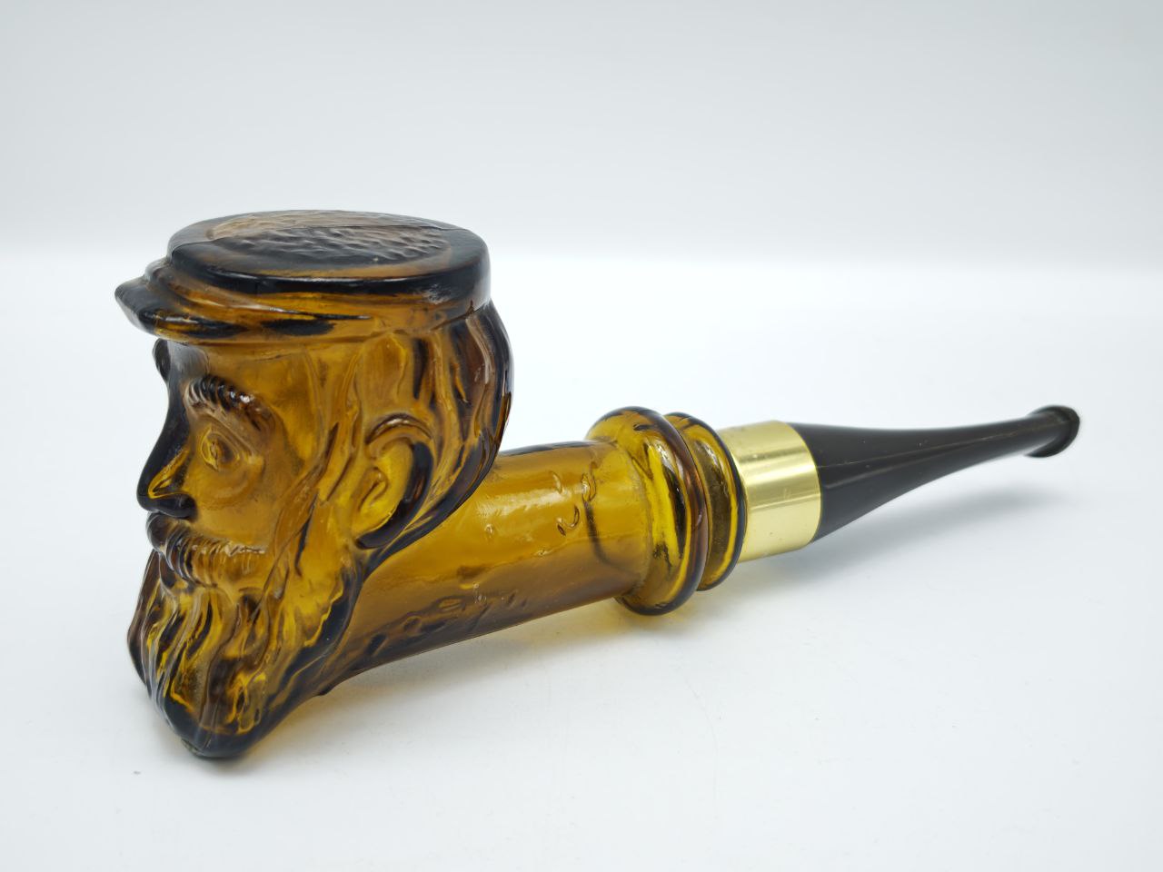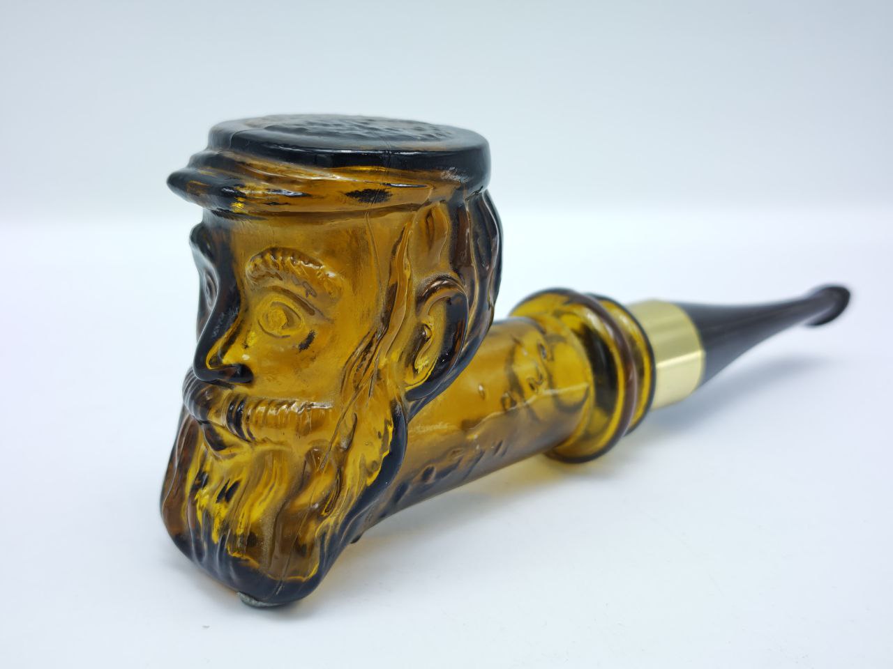 Представляем вам настоящую жемчужину винтажной парфюмерии — эксклюзивный флакон от легендарного бренда AVON, выпущенный в эпоху, когда дизайн был настоящим искусством. Этот флакон для средства после бритья “Nexus” выполнен в виде изысканной курительной трубки, что делает его не просто контейнером для аромата, а подлинным произведением декоративно-прикладного искусства.Флакон изготовлен из высококачественного янтарного стекла, которое придает ему теплый, глубокий оттенок и благородный блеск. Форма трубки идеально проработана: изогнутая чашка, украшенная объемным рельефом лица бородатого джентльмена в шляпе, передает дух эпохи и вызывает ностальгию по утонченной мужской элегантности. Ручка трубки плавно переходит в тонкий мундштук, отделанный черным пластиком и золотистым металлическим ободком, что добавляет изделию роскоши и завершенности.На корпусе флакона сохранилась оригинальная этикетка с надписями на английском и французском языках: “AFTER SHAVE / APRES-RASAGE”, указанием объема “90ml” и маркировкой “67°”, что, вероятно, обозначает крепость спиртовой основы. Также на этикетке указаны города присутствия бренда (Нью-Йорк, Лондон, Мюнхен, Париж, Рим) и лицензионный номер “LIC. UTIF. N. 13/A COMO”, что подтверждает его подлинность и историческую ценность.Этот флакон — не просто предмет быта, это уникальный артефакт, который станет центральным элементом любой коллекции винтажных духов или декора в стиле ретро. Он идеально подойдет для оформления домашнего кабинета, бара или как необычный подарок мужчине, ценящему стиль, историю и индивидуальность. Состояние флакона отличное, без сколов и трещин, что свидетельствует о бережном хранении. Не упустите возможность приобрести этот редкий и запоминающийся предмет, который расскажет историю эпохи и станет вашим личным символом хорошего вкуса.