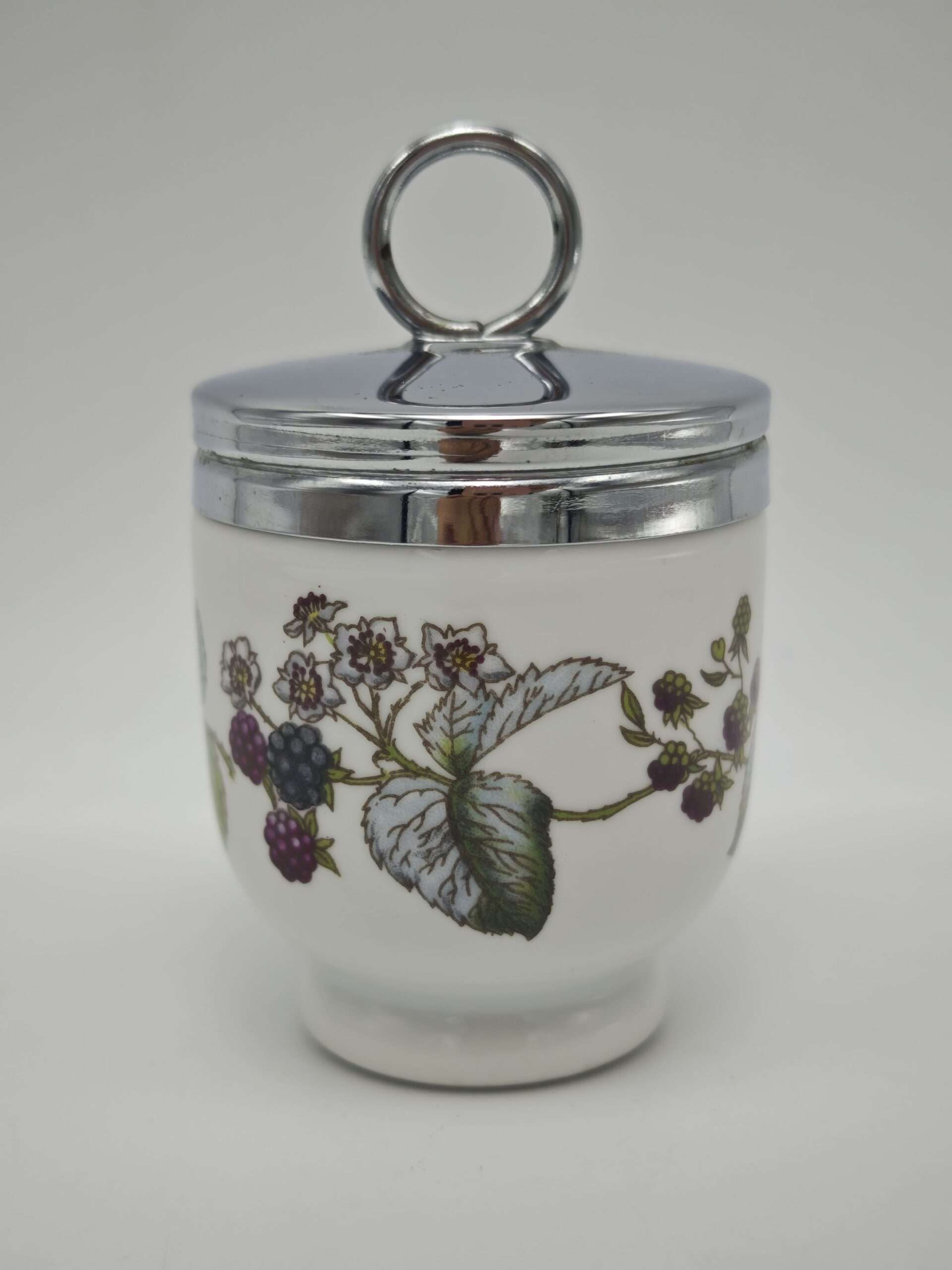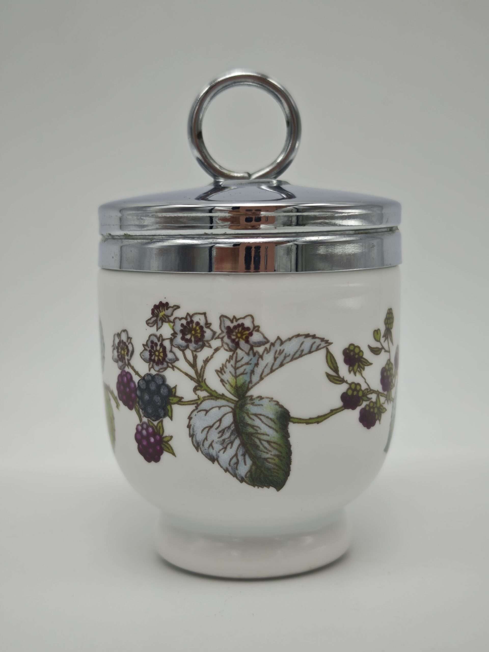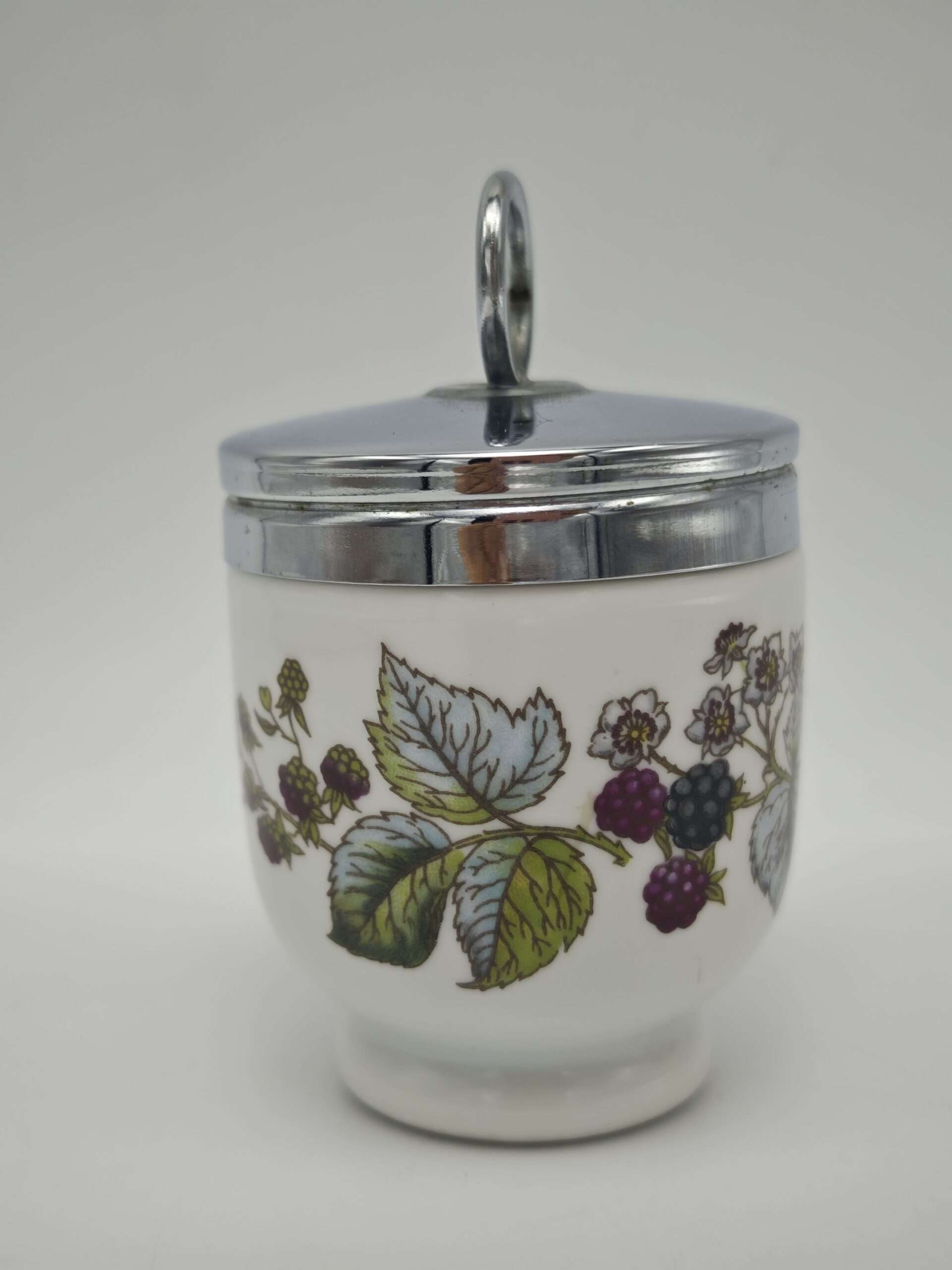 Одиночный английский кодлер с редким узором. Предназначен для приготовления яиц. Так же имеет название пашотница. Изготовлен в 20 веке из фарфора на мануфактуре Royal Worcester (на дне есть клеймо производителя). Английские кодлеры с откручивающейся крышкой являются уникальными, так как больше не производятся – мануфактура Роял Ворчестер была уничтожена. Очень полезны в быту, в них можно готовить вареные яйца с различными наполнителями: ветчиной, курицей, зеленью, сыром и другими ингредиентами. Подаются к столу прямо вместе с ёмкостью и не нуждаются в дополнительной сервировке.