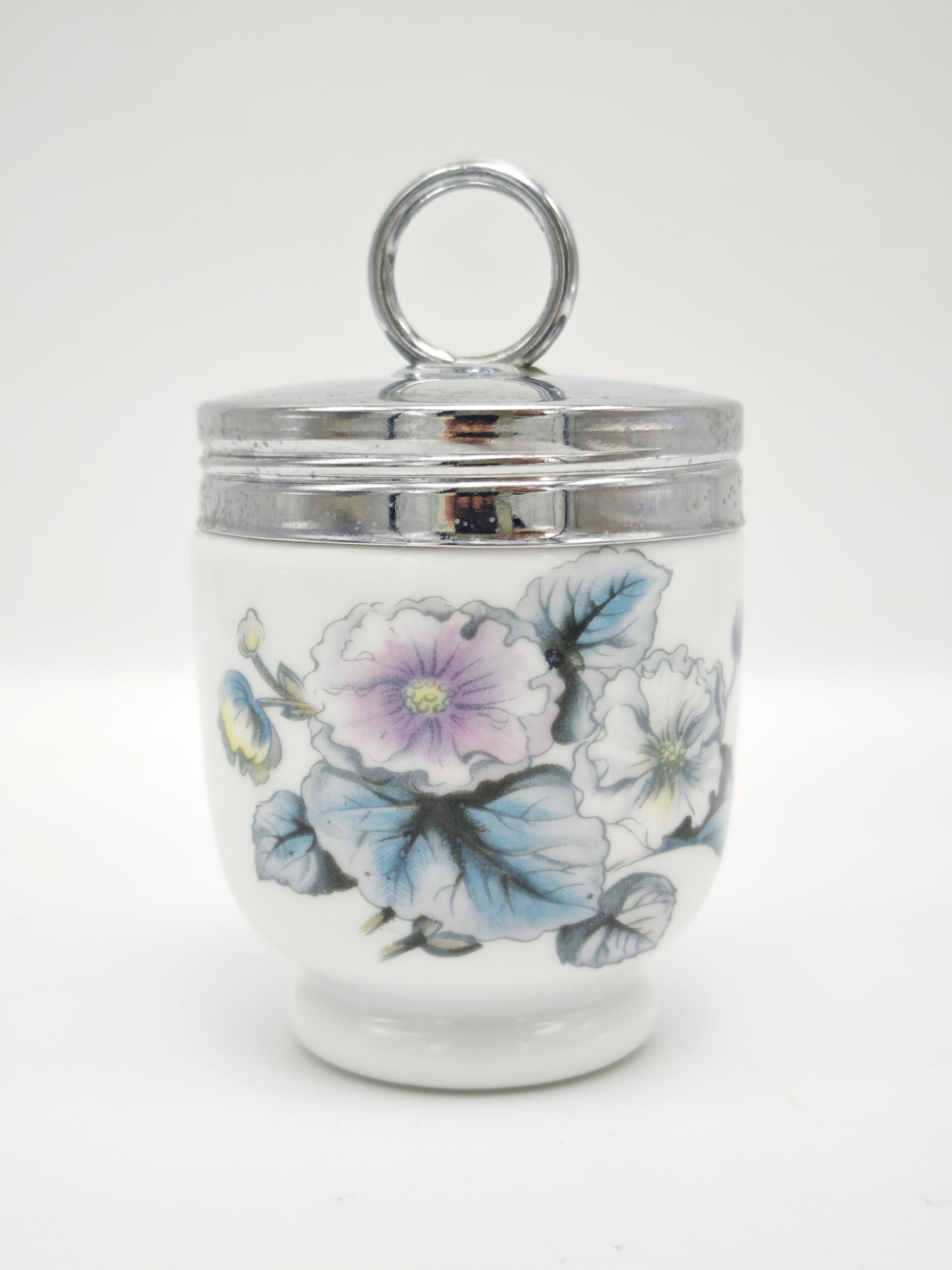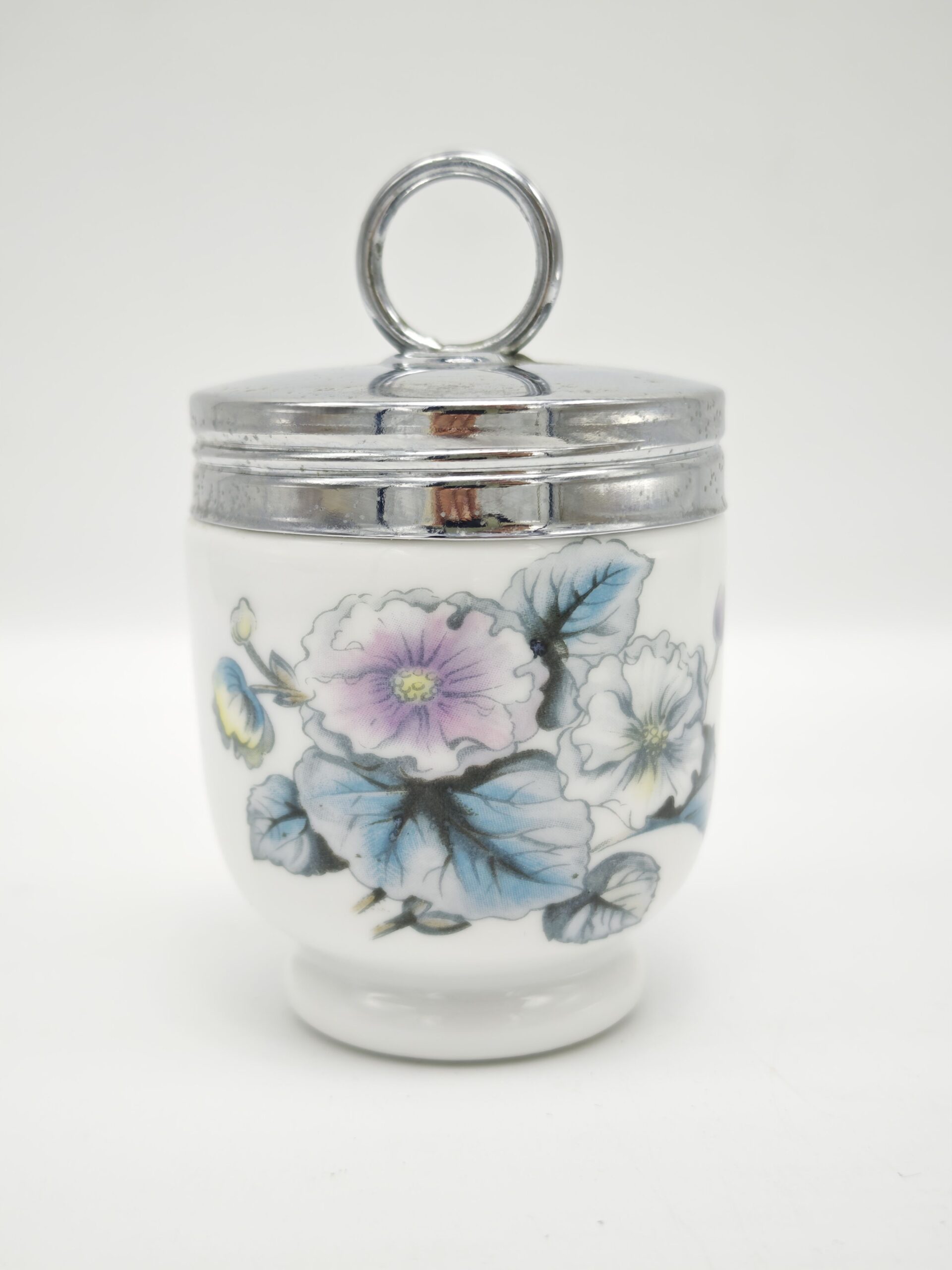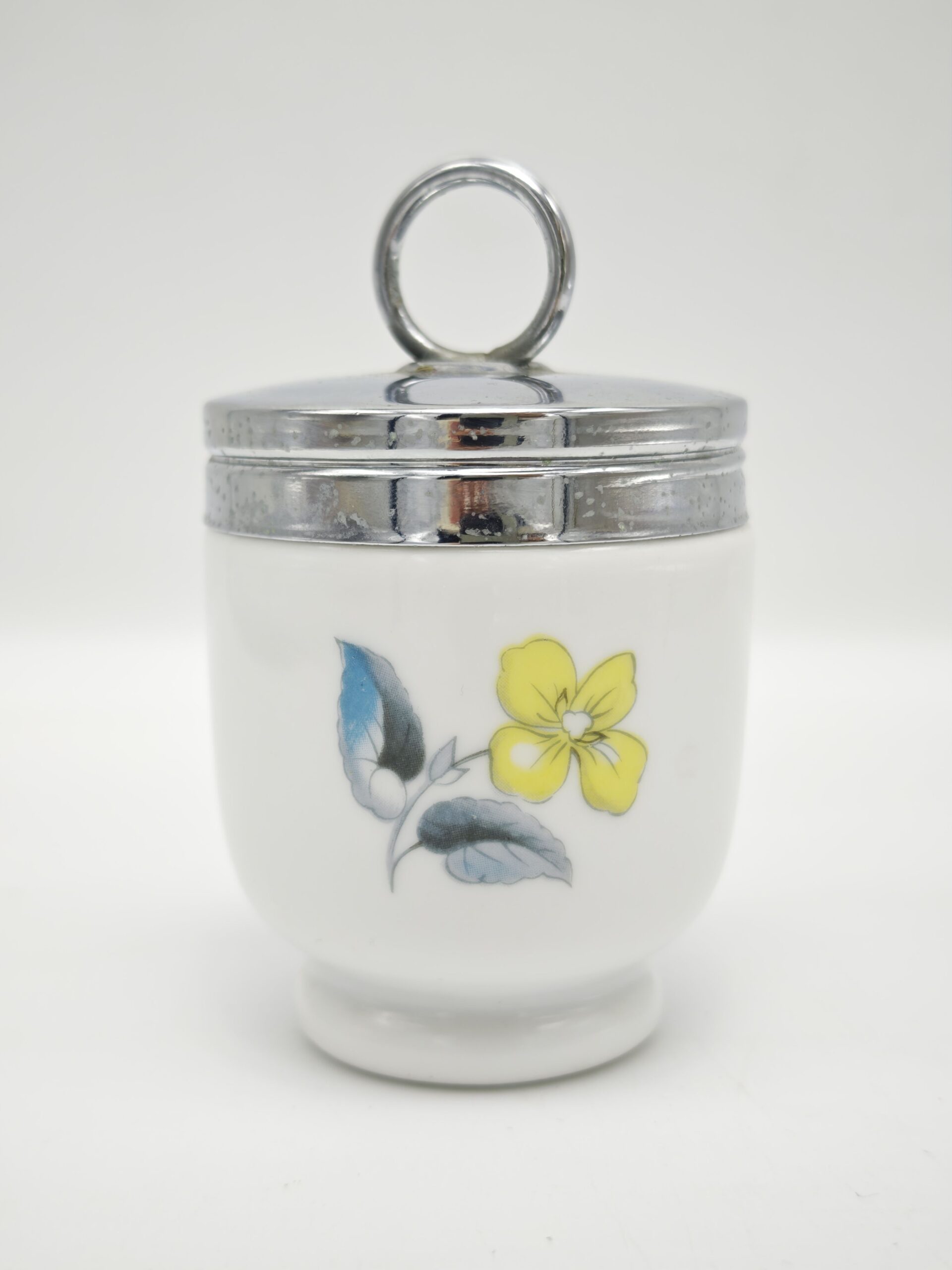 Одиночный английский кодлер. Предназначен для приготовления яиц. Так же имеет название пашотница. Изготовлен в 20 веке из фарфора на мануфактуре Royal Worcester (на дне есть клеймо производителя). Английские кодлеры с откручивающейся крышкой являются уникальными, так как больше не производятся – мануфактура Роял Ворчестер была уничтожена. Очень полезны в быту, в них можно готовить вареные яйца с различными наполнителями: ветчиной, курицей, зеленью, сыром и другими ингредиентами. Подаются к столу прямо вместе с ёмкостью и не нуждаются в дополнительной сервировке.