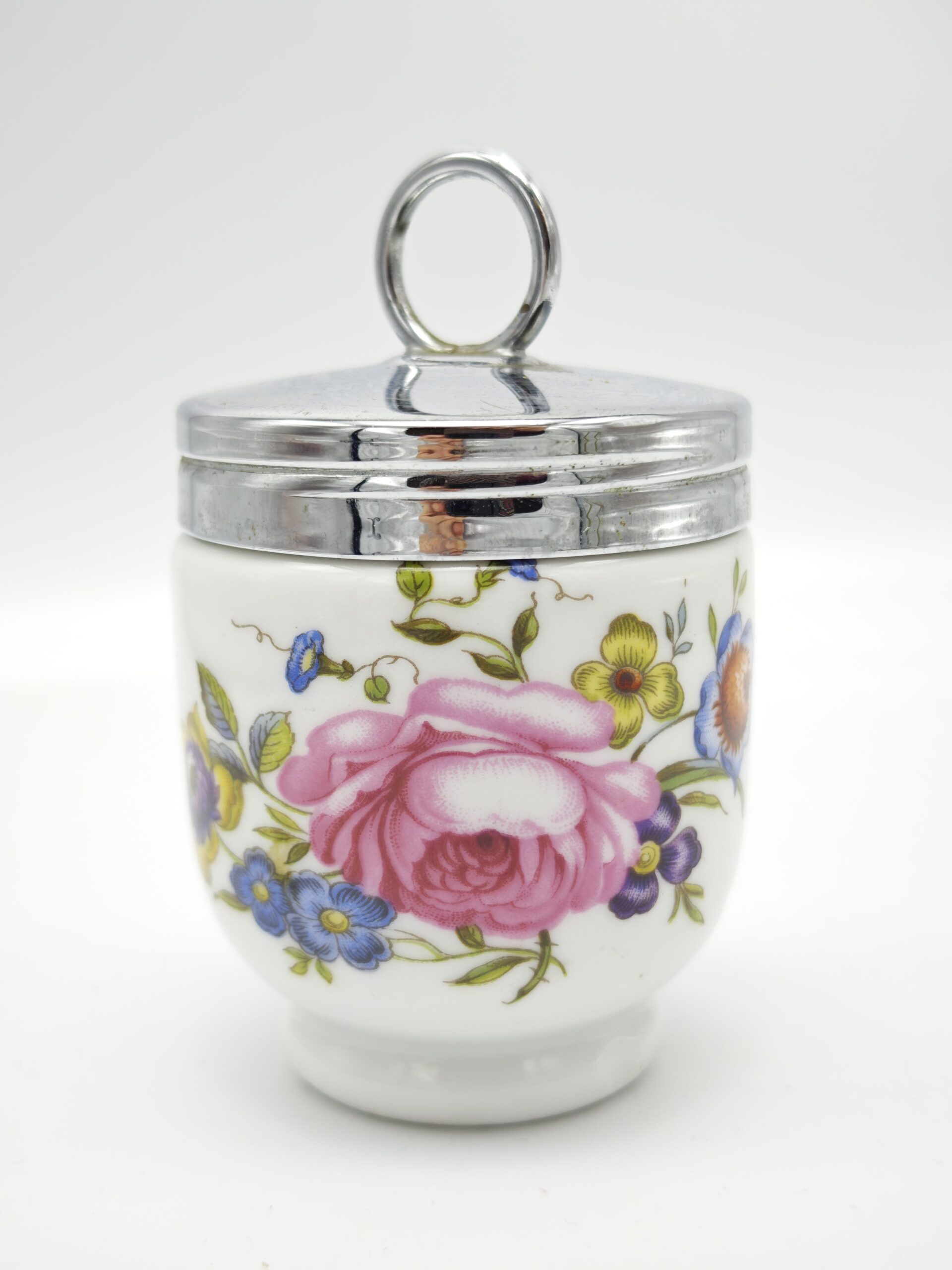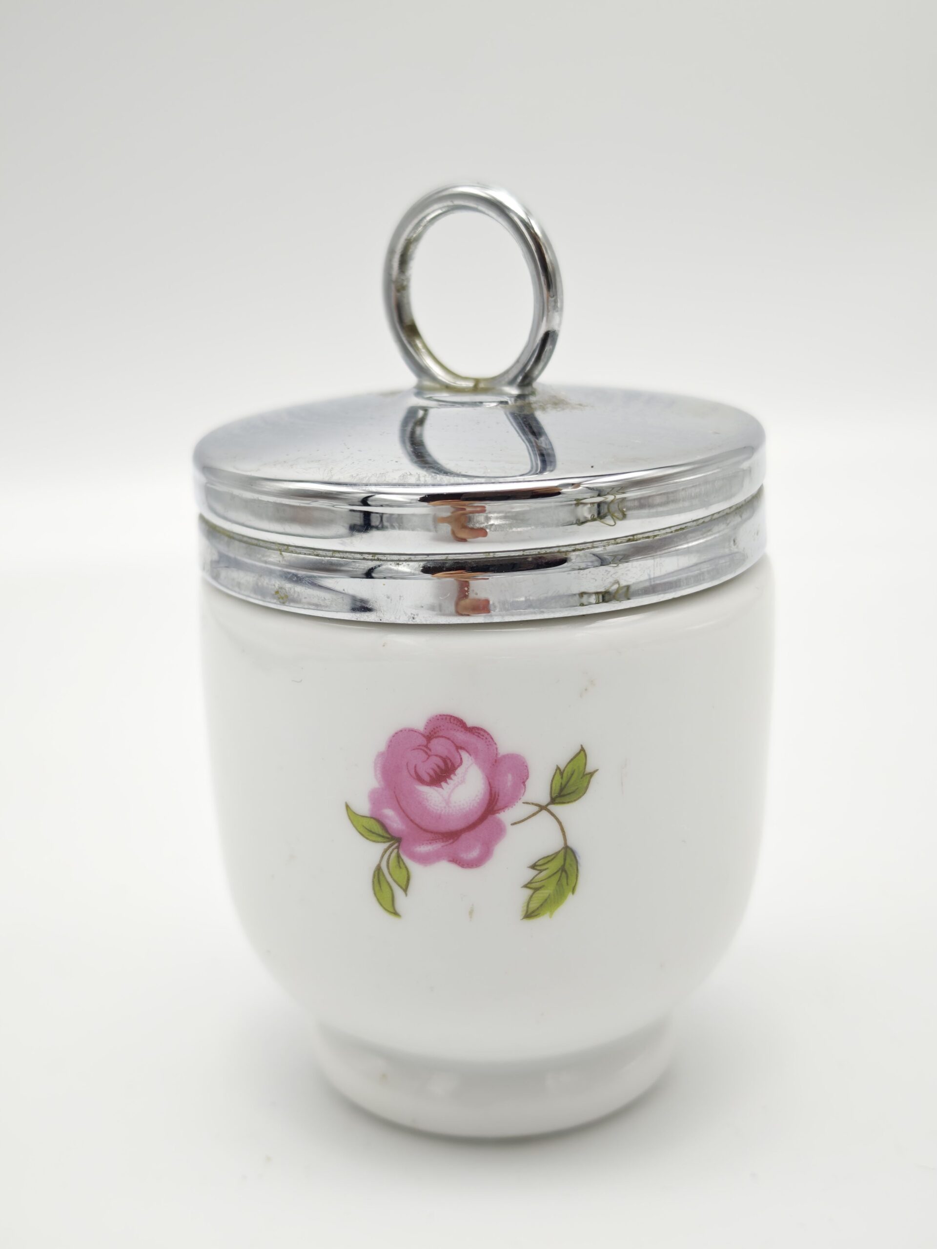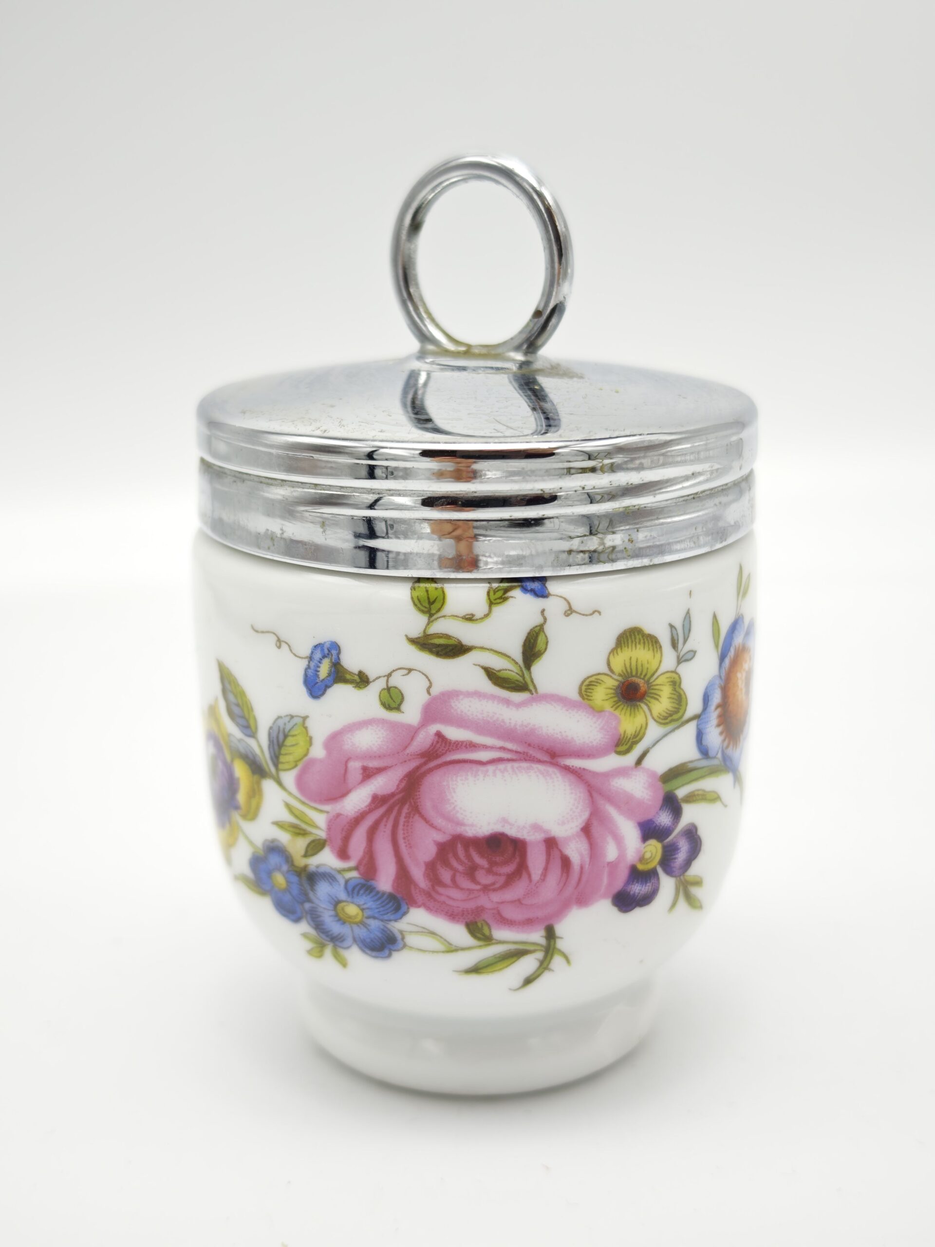 Одиночный английский кодлер. Предназначен для приготовления яиц. Так же имеет название пашотница. Изготовлен в 20 веке из фарфора на мануфактуре Royal Worcester (на дне есть клеймо производителя). Английские кодлеры с откручивающейся крышкой являются уникальными, так как больше не производятся – мануфактура Роял Ворчестер была уничтожена. Очень полезны в быту, в них можно готовить вареные яйца с различными наполнителями: ветчиной, курицей, зеленью, сыром и другими ингредиентами. Подаются к столу прямо вместе с ёмкостью и не нуждаются в дополнительной сервировке.