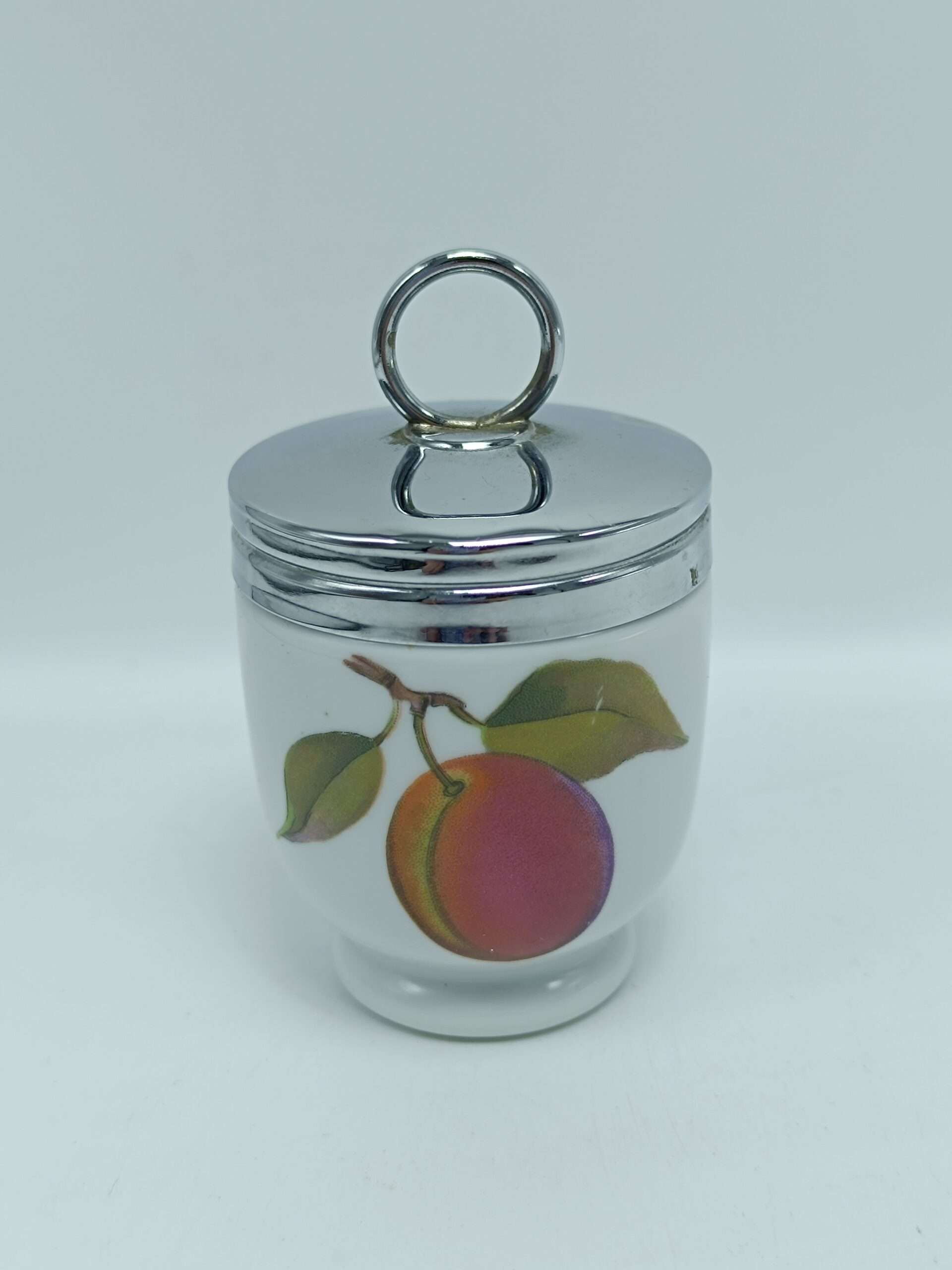 Одиночный английский кодлер. Предназначен для приготовления яиц. Так же имеет название пашотница. Изготовлен в 20 веке из фарфора на мануфактуре Royal Worcester (на дне есть клеймо производителя). Английские кодлеры с откручивающейся крышкой являются уникальными, так как больше не производятся – мануфактура Роял Ворчестер была уничтожена. Очень полезны в быту, в них можно готовить вареные яйца с различными наполнителями: ветчиной, курицей, зеленью, сыром и другими ингредиентами. Подаются к столу прямо вместе с ёмкостью и не нуждаются в дополнительной сервировке.