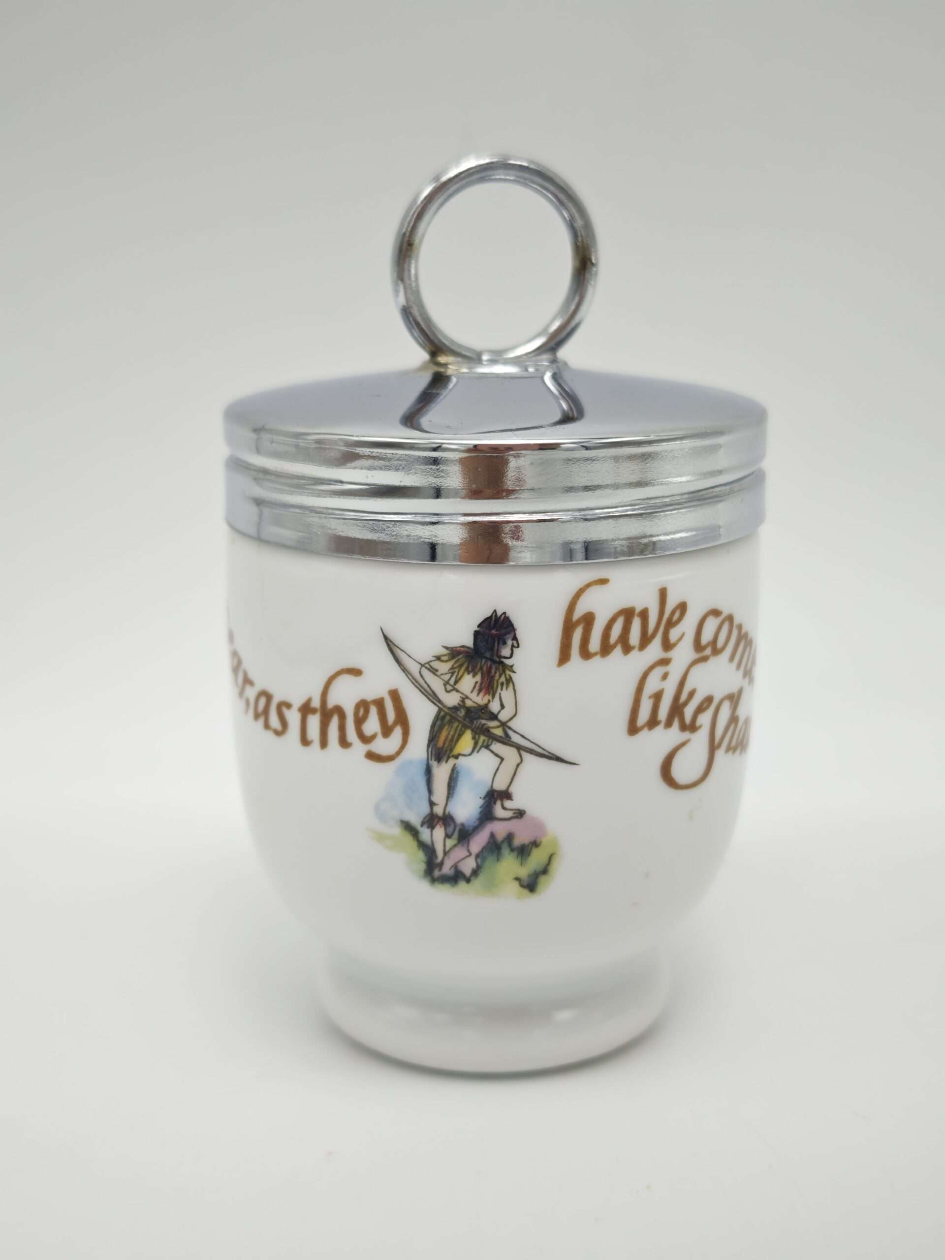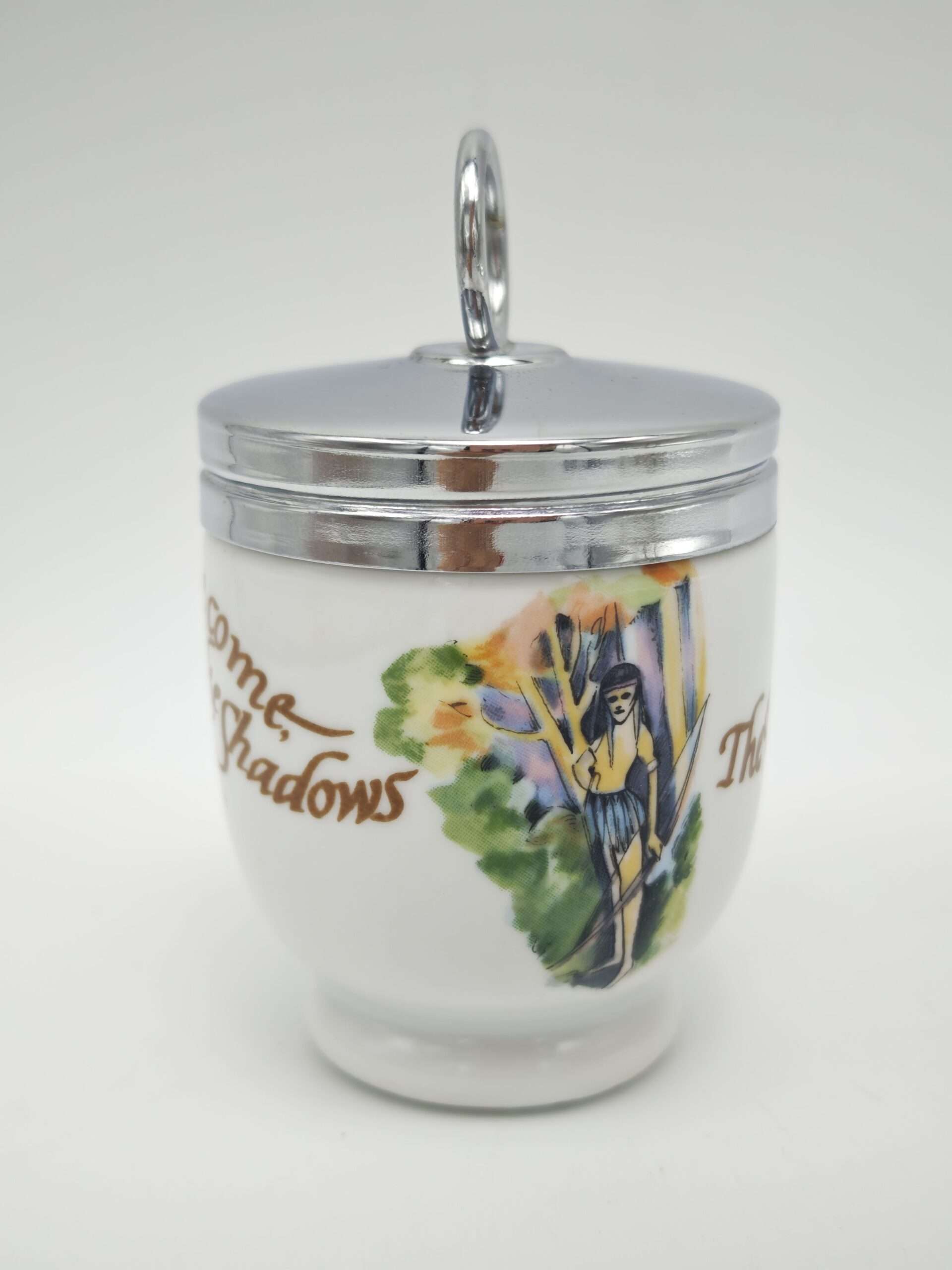Редкий одиночный английский кодлер. Предназначен для приготовления яиц. Так же имеет название пашотница. Изготовлен в 20 веке из фарфора на мануфактуре Royal Worcester (на дне есть клеймо производителя). Английские кодлеры с откручивающейся крышкой являются уникальными, так как больше не производятся – мануфактура Роял Ворчестер была уничтожена. Очень полезны в быту, в них можно готовить вареные яйца с различными наполнителями: ветчиной, курицей, зеленью, сыром и другими ингредиентами. Подаются к столу прямо вместе с ёмкостью и не нуждаются в дополнительной сервировке.