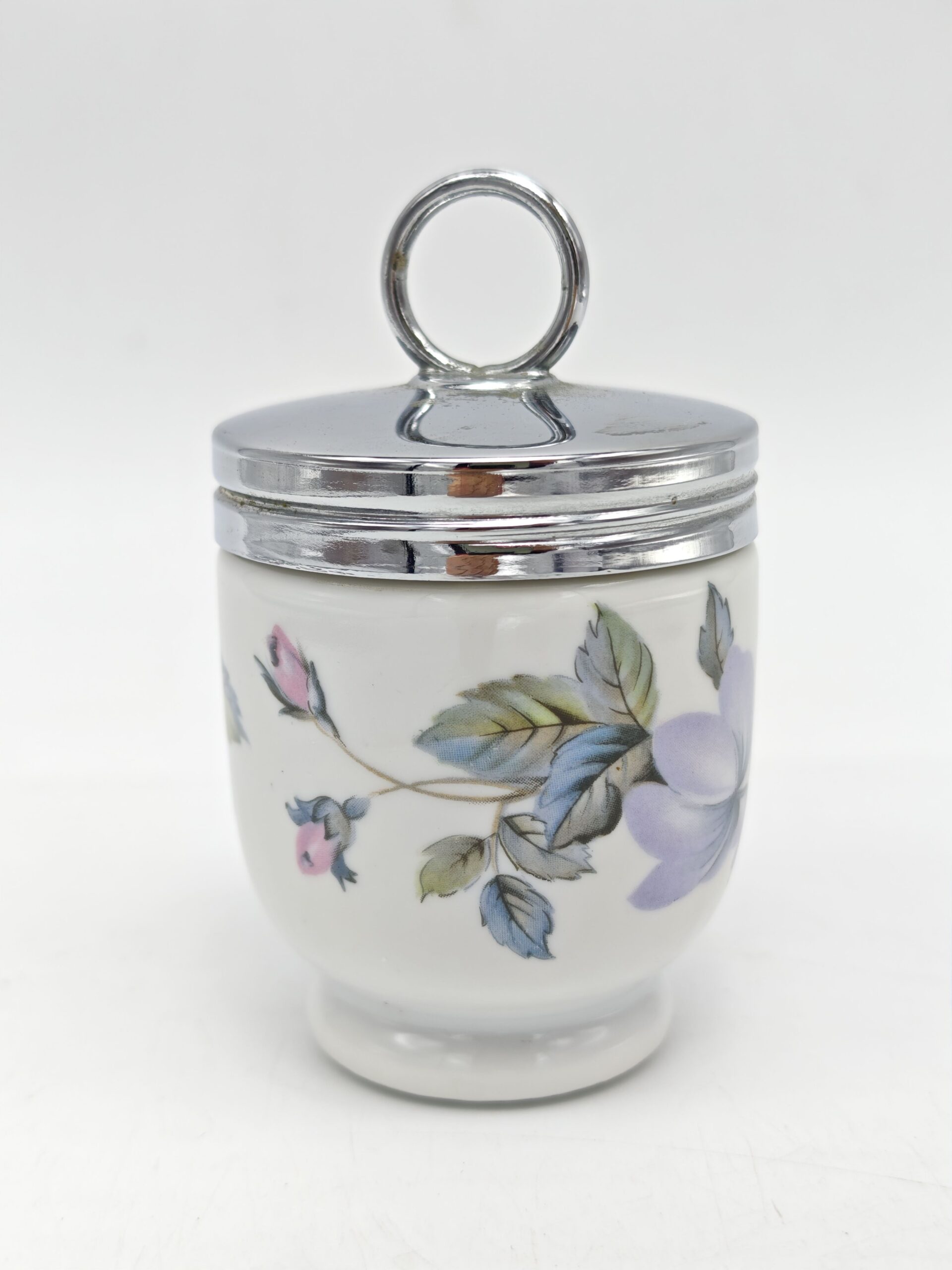 Одиночный английский кодлер с редким узором. Предназначен для приготовления яиц. Так же имеет название пашотница. Изготовлен в 20 веке из фарфора на мануфактуре Royal Worcester (на дне есть клеймо производителя). Английские кодлеры с откручивающейся крышкой являются уникальными, так как больше не производятся – мануфактура Роял Ворчестер была уничтожена. Очень полезны в быту, в них можно готовить вареные яйца с различными наполнителями: ветчиной, курицей, зеленью, сыром и другими ингредиентами. Подаются к столу прямо вместе с ёмкостью и не нуждаются в дополнительной сервировке.