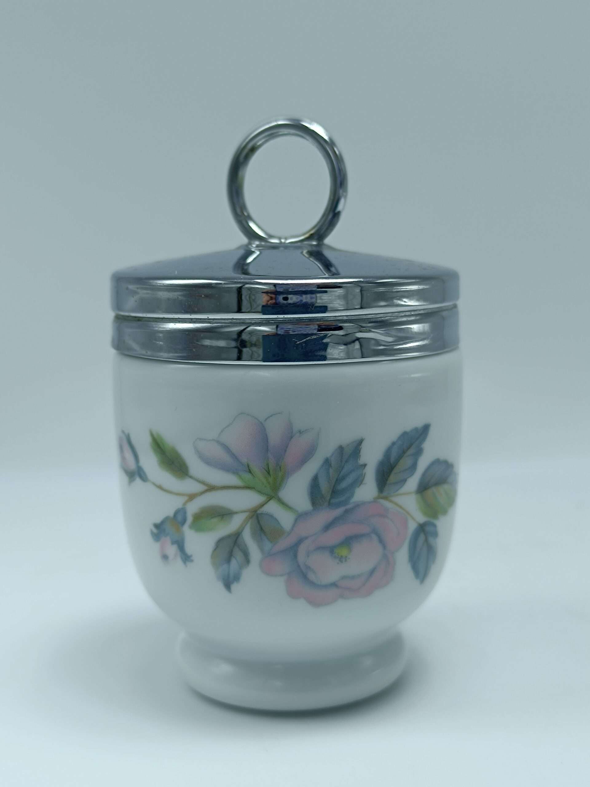Одиночный английский кодлер. Предназначен для приготовления яиц. Так же имеет название пашотница. Изготовлен в 20 веке из фарфора на мануфактуре Royal Worcester (на дне есть клеймо производителя). Английские кодлеры с откручивающейся крышкой являются уникальными, так как больше не производятся – мануфактура Роял Ворчестер была уничтожена. Очень полезны в быту, в них можно готовить вареные яйца с различными наполнителями: ветчиной, курицей, зеленью, сыром и другими ингредиентами. Подаются к столу прямо вместе с ёмкостью и не нуждаются в дополнительной сервировке.