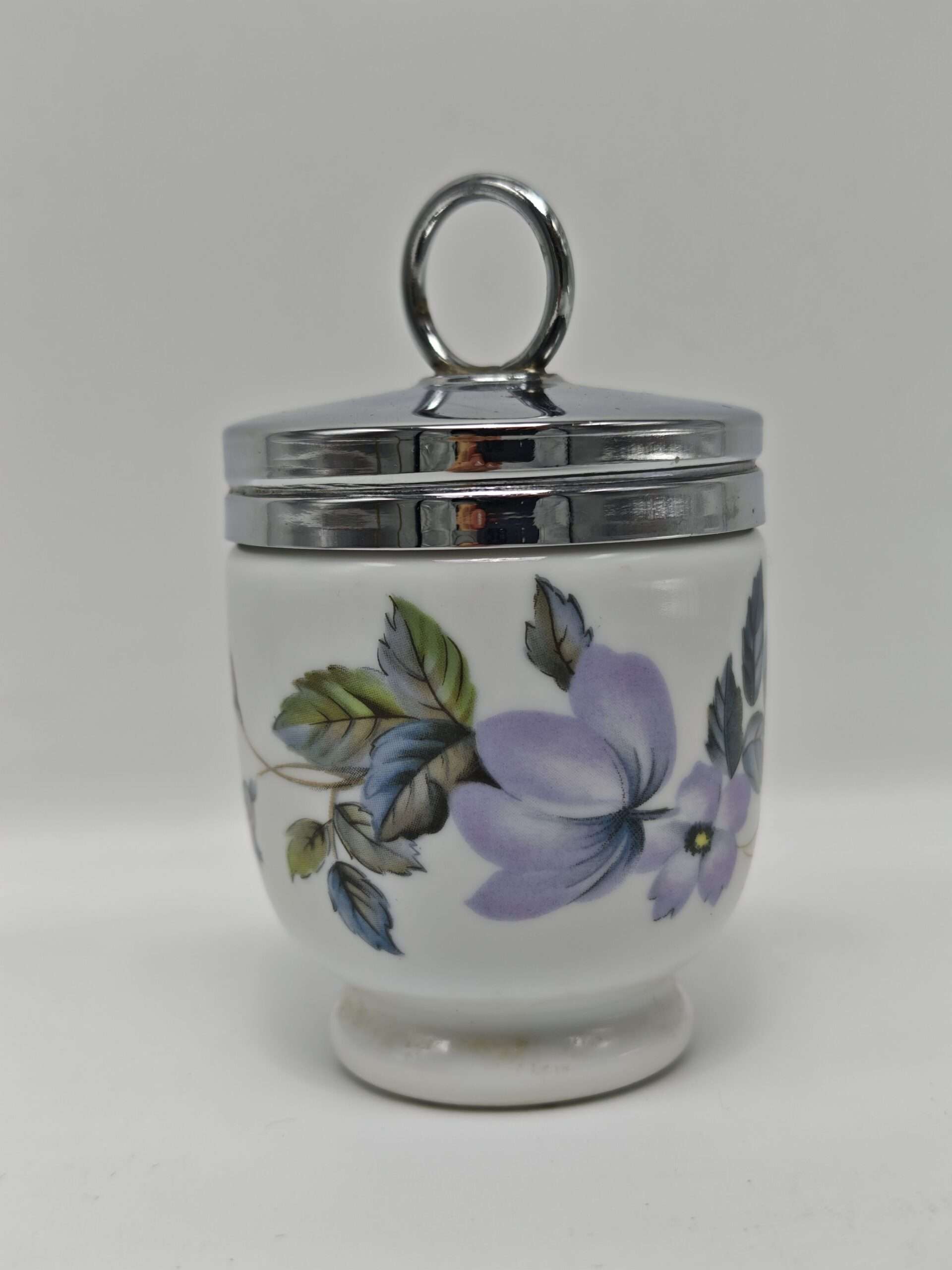 Одиночный английский кодлер с редким узором. Предназначен для приготовления яиц. Так же имеет название пашотница. Изготовлен в 20 веке из фарфора на мануфактуре Royal Worcester (на дне есть клеймо производителя). Английские кодлеры с откручивающейся крышкой являются уникальными, так как больше не производятся – мануфактура Роял Ворчестер была уничтожена. Очень полезны в быту, в них можно готовить вареные яйца с различными наполнителями: ветчиной, курицей, зеленью, сыром и другими ингредиентами. Подаются к столу прямо вместе с ёмкостью и не нуждаются в дополнительной сервировке.
