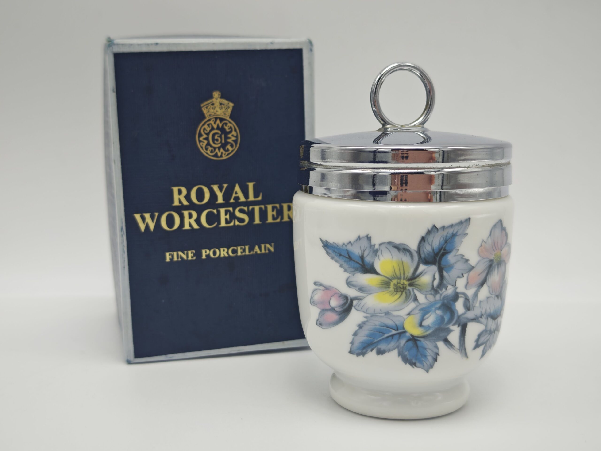 Двойной английский кодлер. Предназначен для приготовления яиц. Так же имеет название пашотница. Изготовлен в 20 веке из фарфора на мануфактуре Royal Worcester (на дне есть клеймо производителя). Английские кодлеры с откручивающейся крышкой являются уникальными, так как больше не производятся – мануфактура Роял Ворчестер была уничтожена. Очень полезны в быту, в них можно готовить вареные яйца с различными наполнителями: ветчиной, курицей, зеленью, сыром и другими ингредиентами. Подаются к столу прямо вместе с ёмкостью и не нуждаются в дополнительной сервировке.