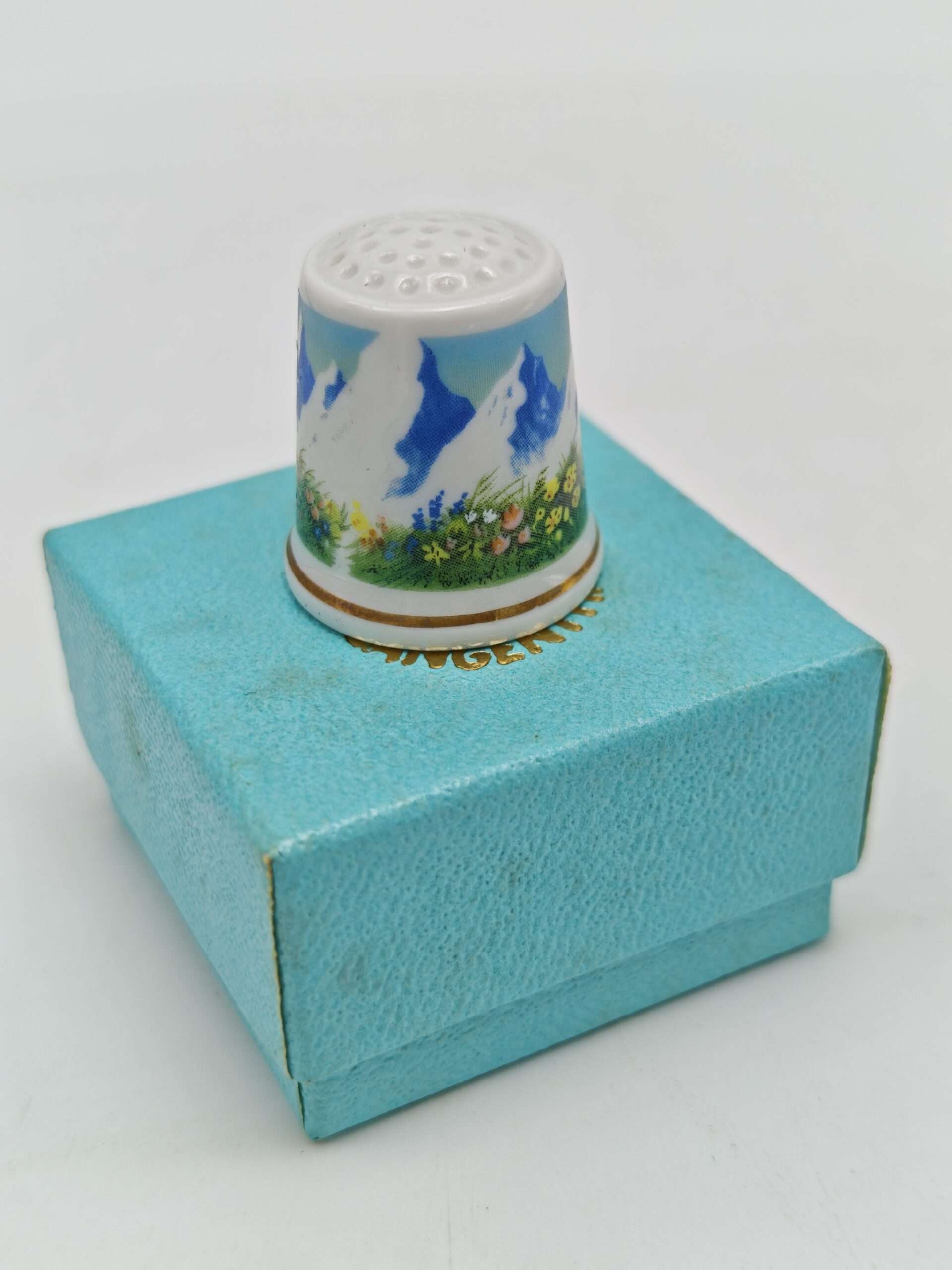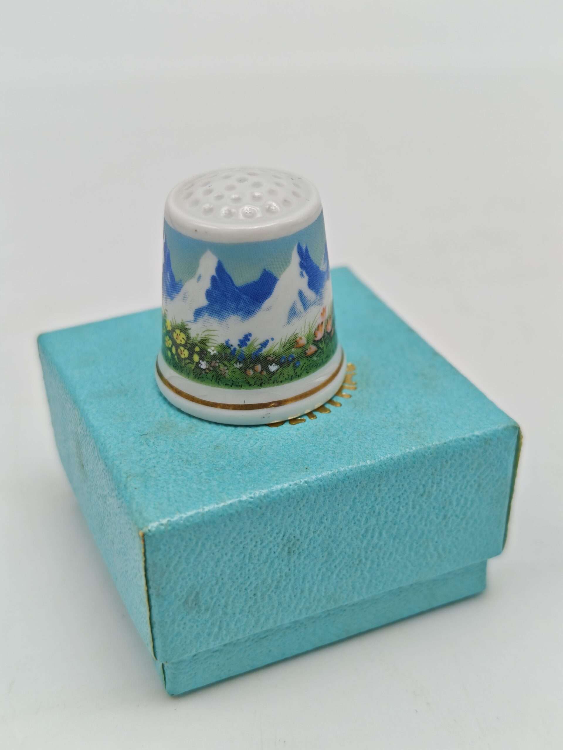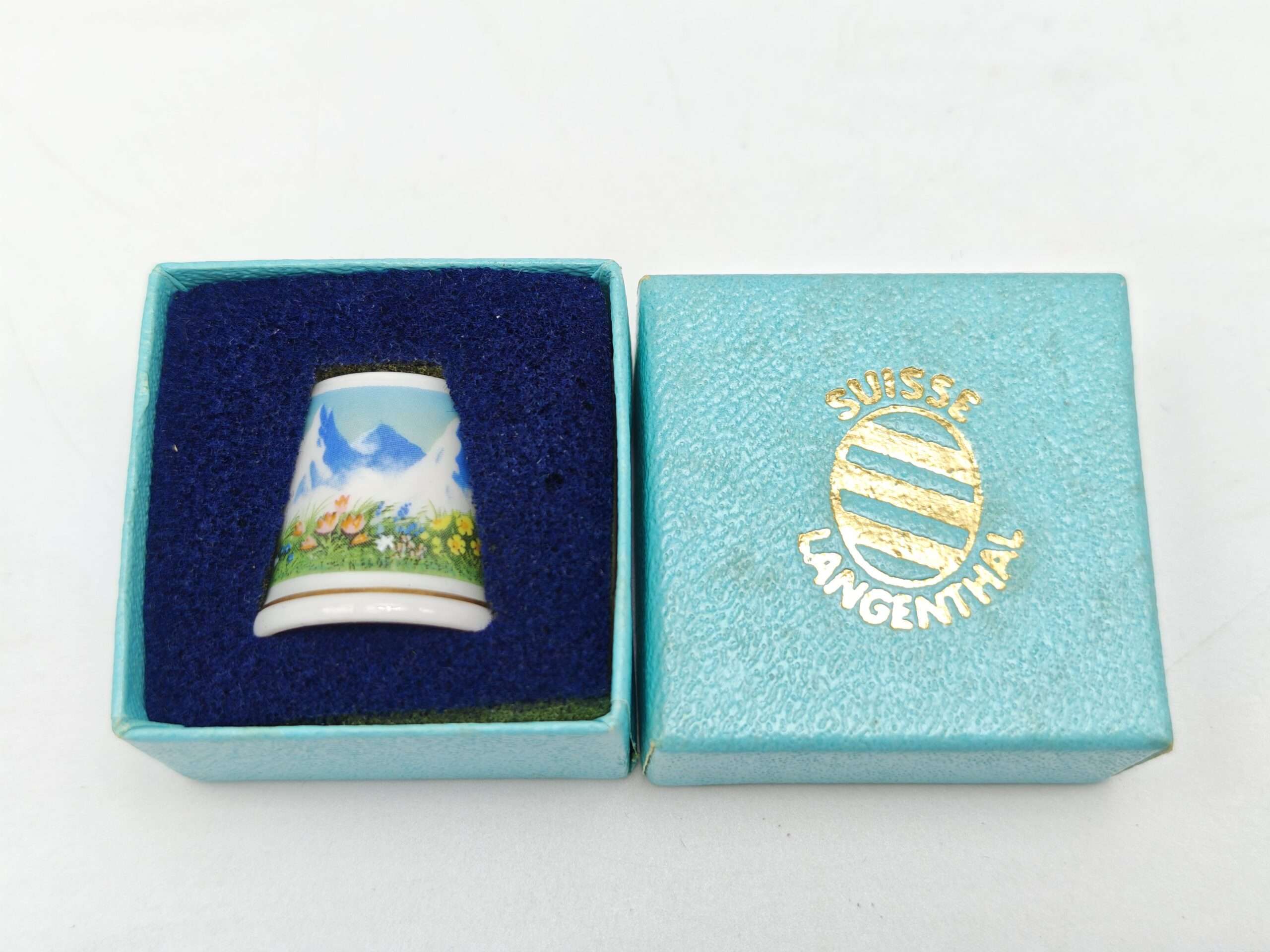 Винтажный коллекционный наперсток Alpine Meadow, Langenthal China специально для Thimble Collectors Club. В оригинальной коробочке. Швейцария1990-е годы.