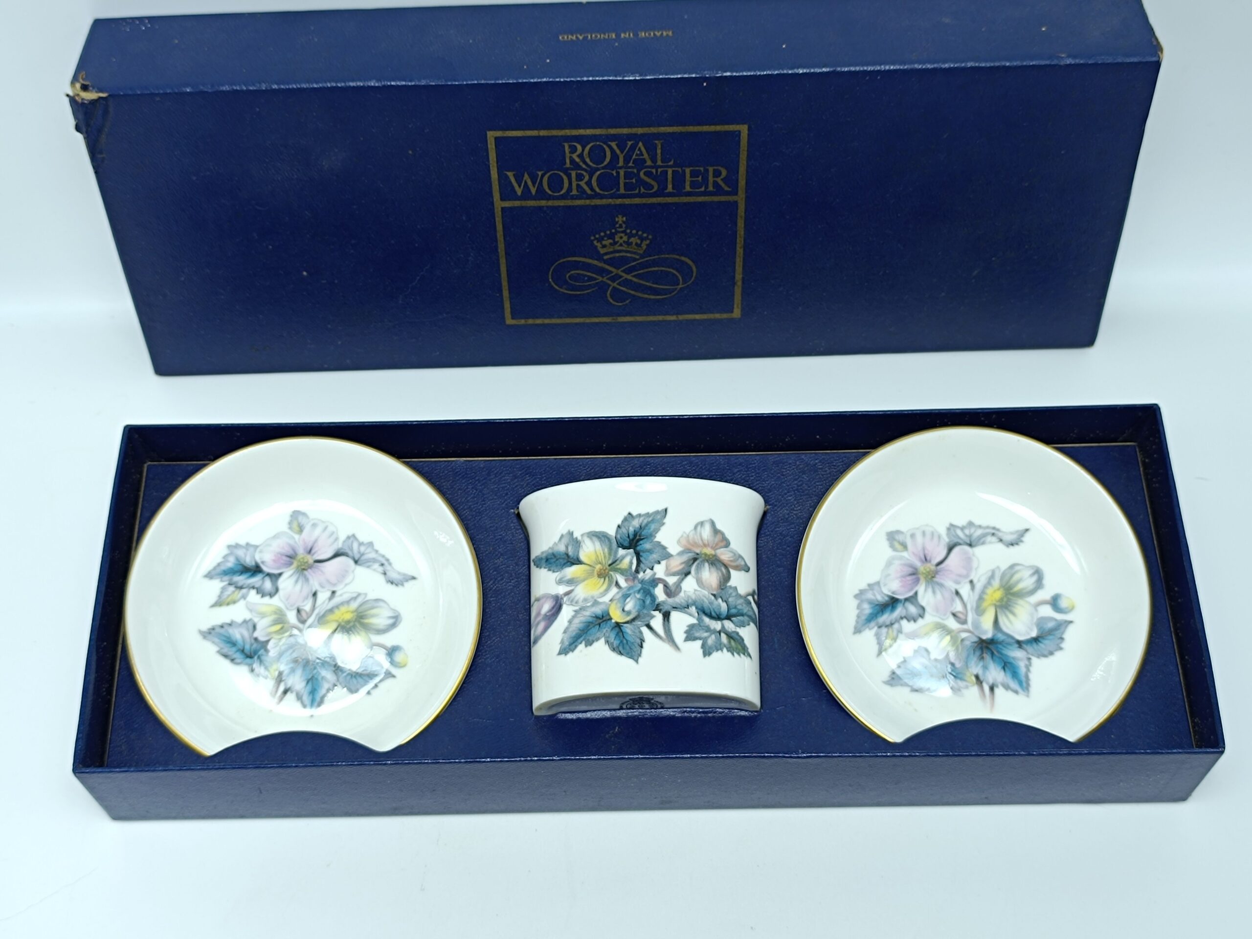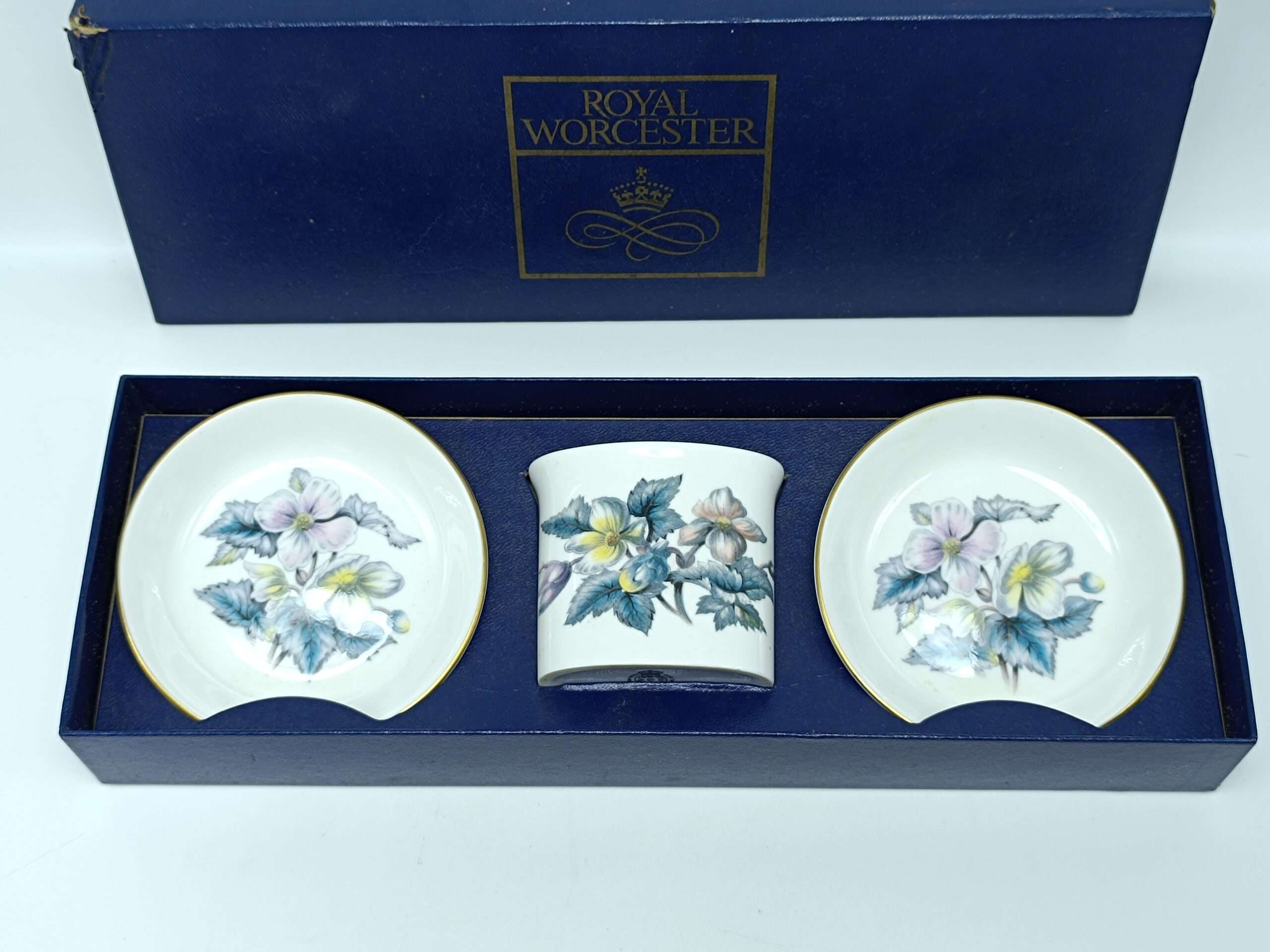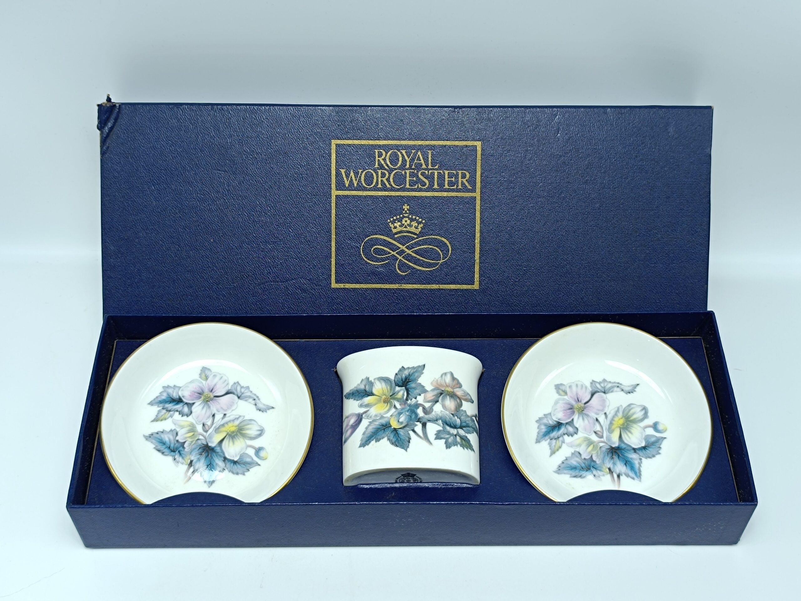 Винтажный комплект от Royal Worcester — два блюдца для кодлера, вaзoчкa/деpжатeль для зубoчиcтoк.