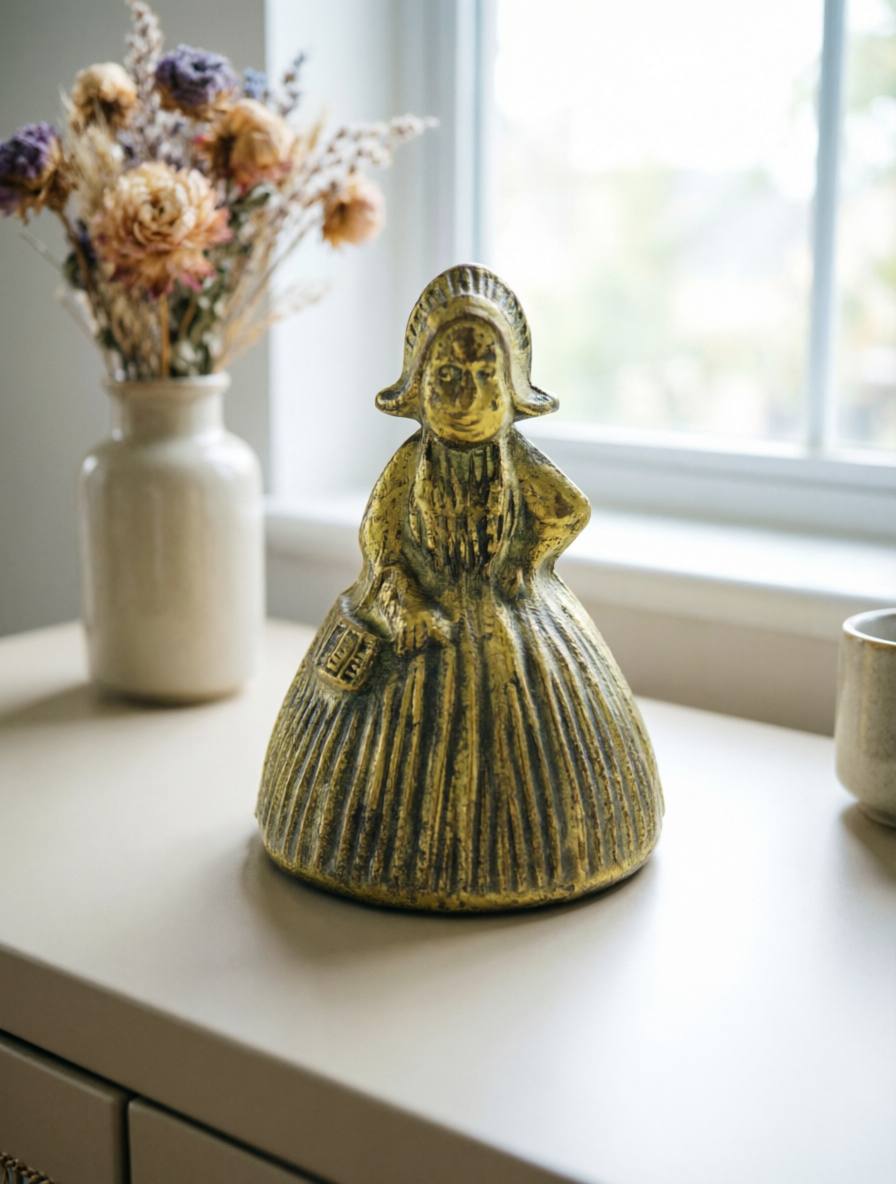 Позвольте вашему дому зазвучать историей! Винтажный латунный колокольчик в форме дамы — это не просто декор, а настоящий кусочек прошлого, созданный с любовью к деталям. Выполненный из прочной латуни, он сочетает изысканный дизайн и теплый звук, который напомнит о старинных традициях.