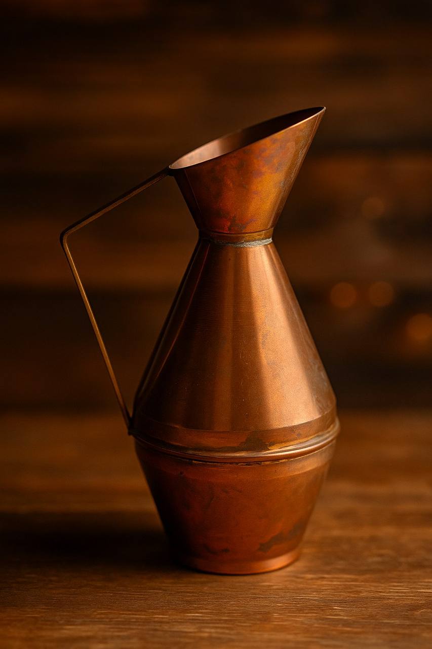 Превосходный винтажный медный кувшин образца «Эпоха Уюта» — это не просто предмет кухонной утвари, но и истинное произведение искусства, выполненное в лучших традициях прошлого столетия. Аура прошлого времени и благородство материала превращают его в незаменимый элемент для тех, кто стремится добавить в свой интерьер капельку уникальности и домашнего уюта. Созданный из высококачественной меди, этот кувшин не только практичен, но и долговечен. Его характерный теплый оттенок, которым обладает только медь, с течением времени приобретает ещё больше шарма, покрываясь благородной патиной. Формы кувшина, сглаженные веками традиций, выполнены с особой любовью к деталям, а изящная ручка обеспечивает удобство использования. Этот кувшин найдет свое место на любой кухне, став неотъемлемой частью семейных традиций. Подавайте с ним воду, свежеотжатые соки или домашние лимонады, создавая атмосферу комфорта и тепла, или используйте его в качестве элегантного вазы для цветов — и ваш дом наполнится неповторимой эстетикой и шармом. Такой кувшин станет отличным подарком для ценителей антиквариата или украшением вашей собственной коллекции. Создайте неповторимую атмосферу в вашем доме, сделав этот уникальный кувшин частью вашего интерьера. Напоминающий о вечных ценностях и ярких моментах прошлого, этот кувшин с каждым днем будет дарить вам радость и тепло домашнего очага. Закажите его прямо сейчас и ощутите на себе магию прошлого!