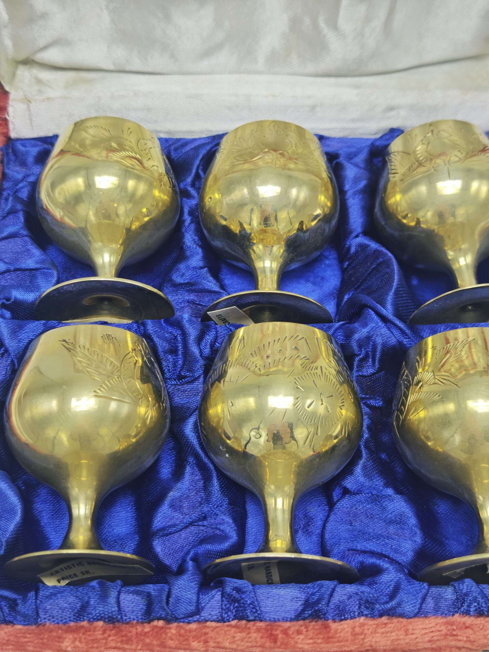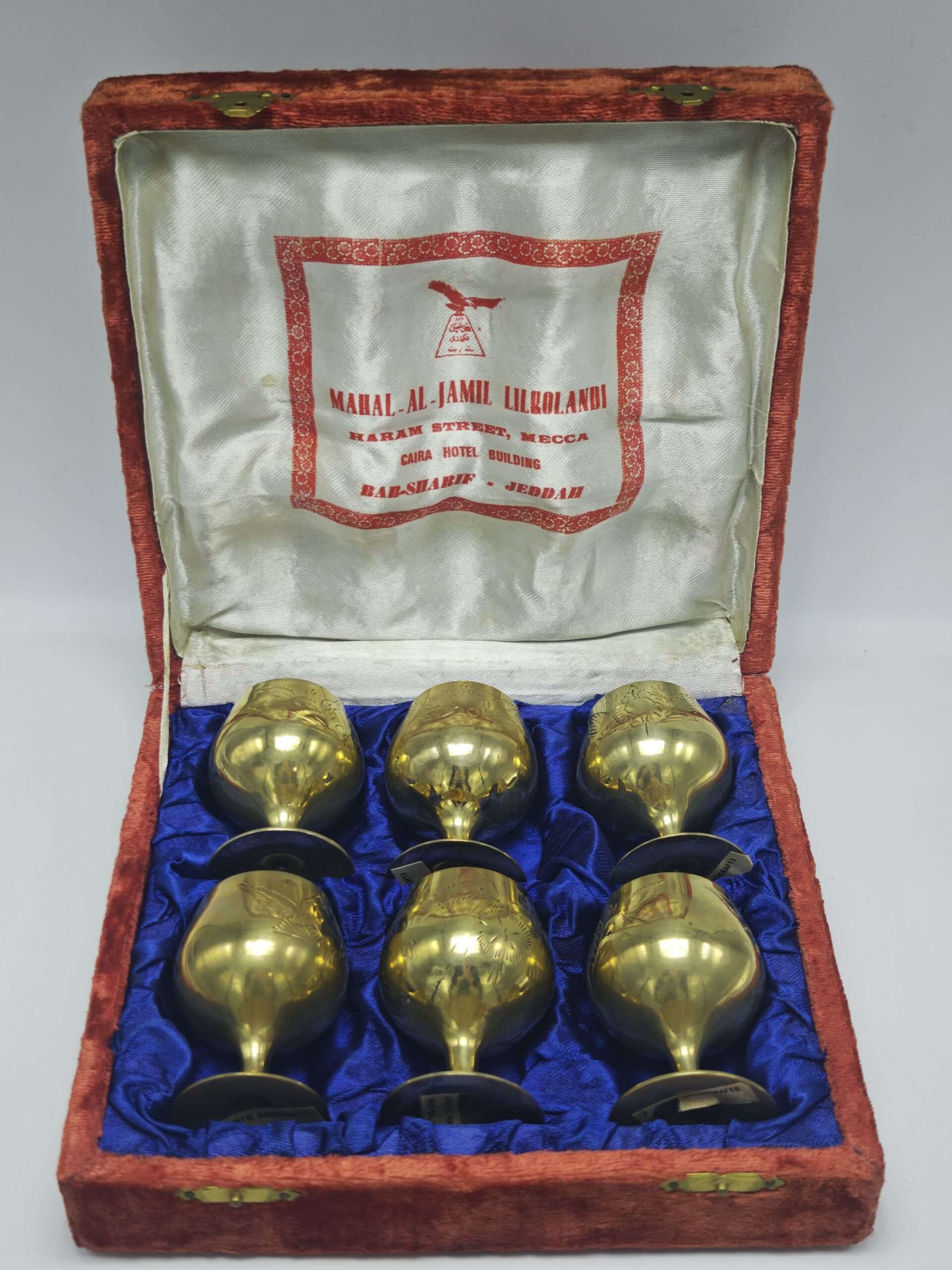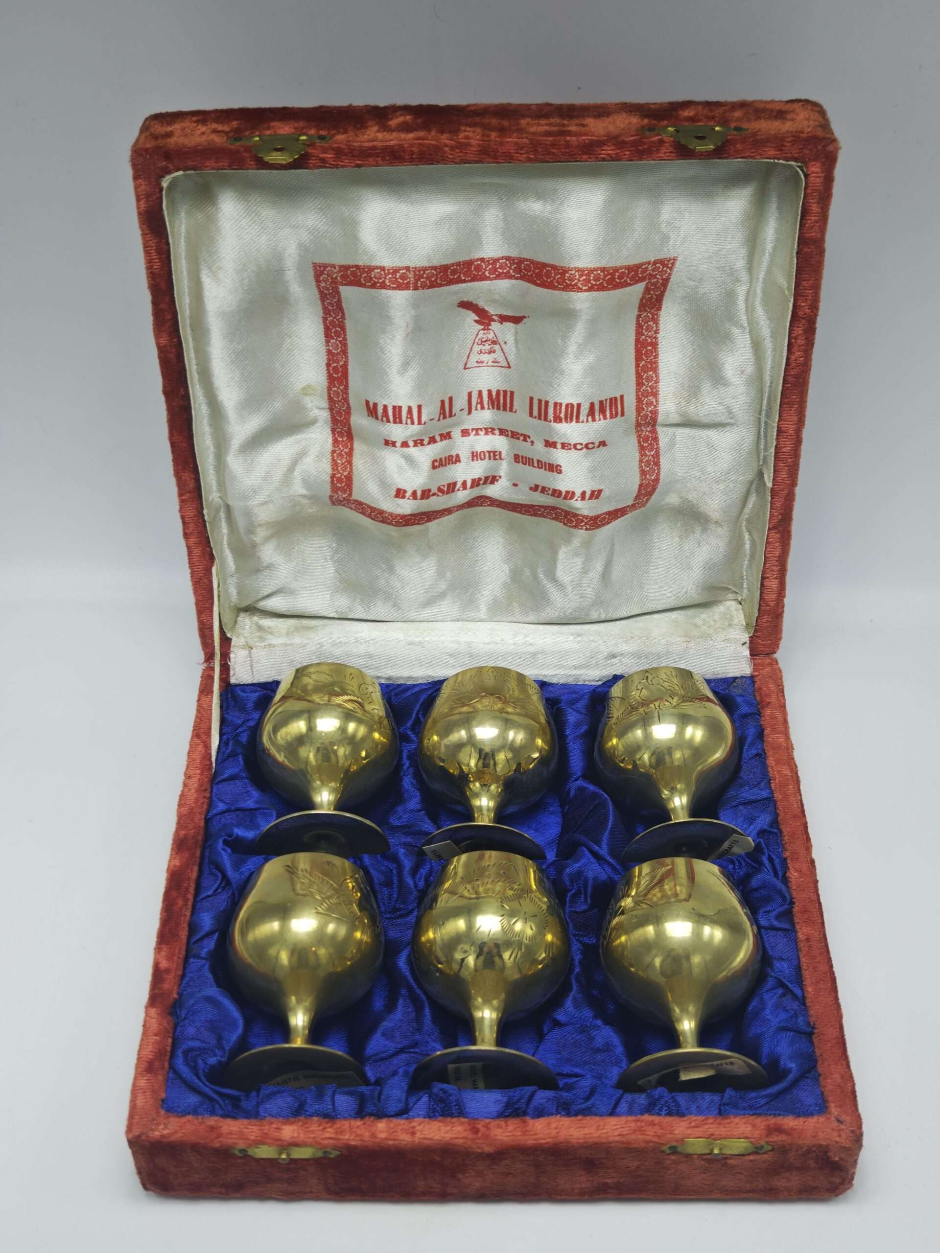 Винтажный набор из 6 рюмок в оригинальном футляре Латунь и Посеребрение. Англия Высота рюмок 6.5 см
