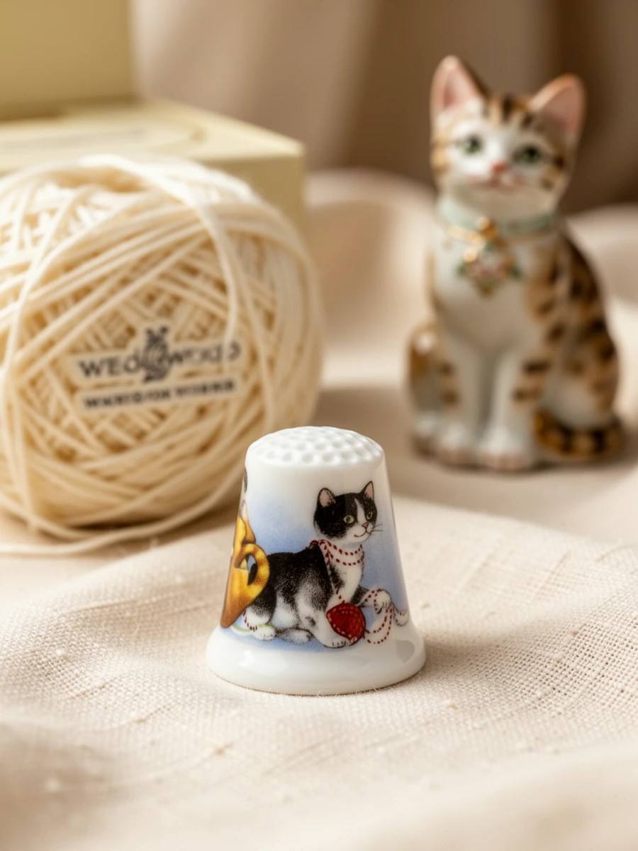 Очаровательный коллекционный напёрсток из костяного фарфора от легендарной английской мануфактуры Wedgwood. Изделие украшено трогательной росписью — игривые котята с клубками ниток создают атмосферу домашнего уюта и тепла.