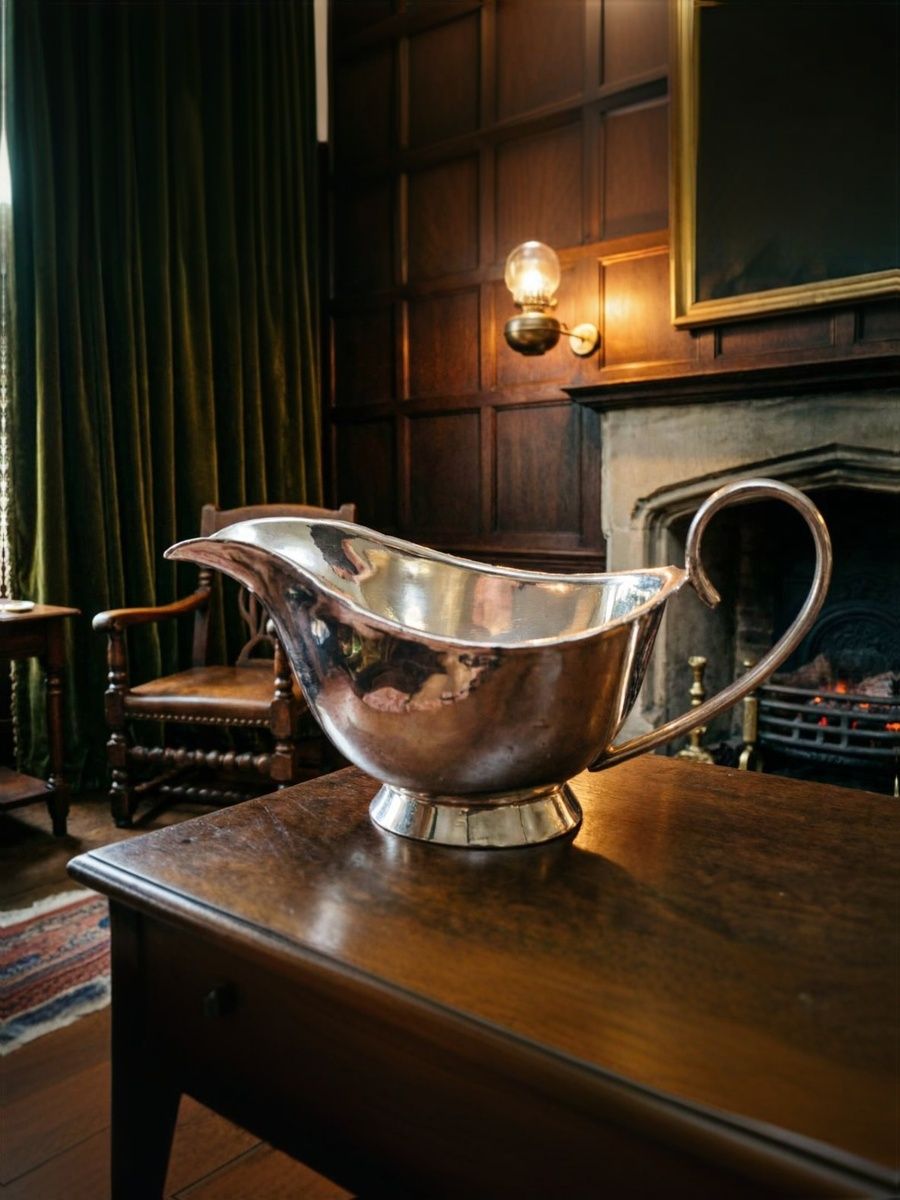 Элегантный винтажный соусник из посеребренного металла от английской компании G. & S. Co (Regent Plate) — воплощение аристократичной сервировки и классических английских традиций.
