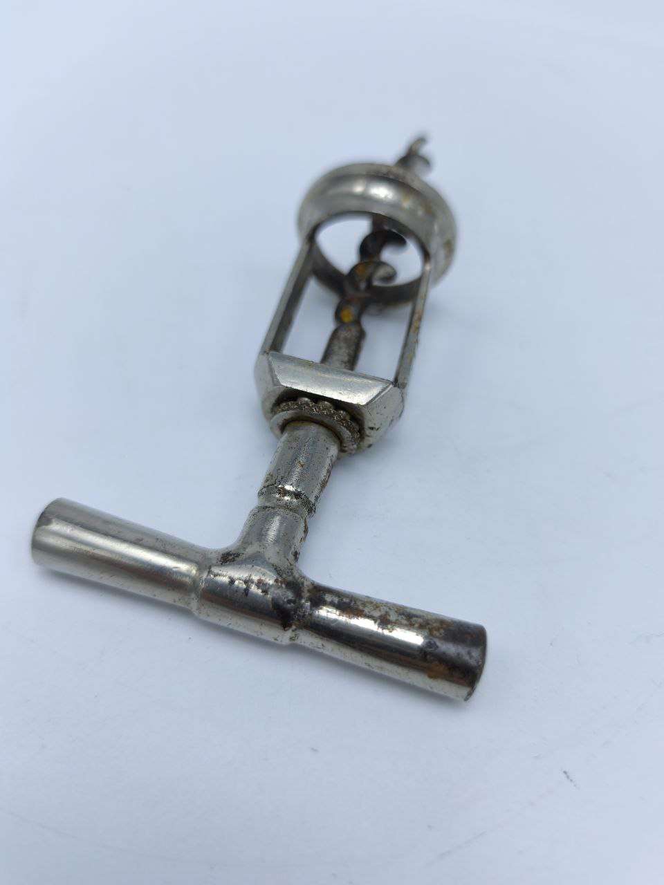 Англия, 1950-е гг. Металлический штопор с Т-образной ручкой и фиксирующей корзиной — образец утилитарного дизайна середины XX века. Лаконичная конструкция обеспечивает надёжный захват пробки и лёгкость извлечения. Идеальный вариант для коллекционеров винтажной кухонной утвари и ценителей винного ритуала.