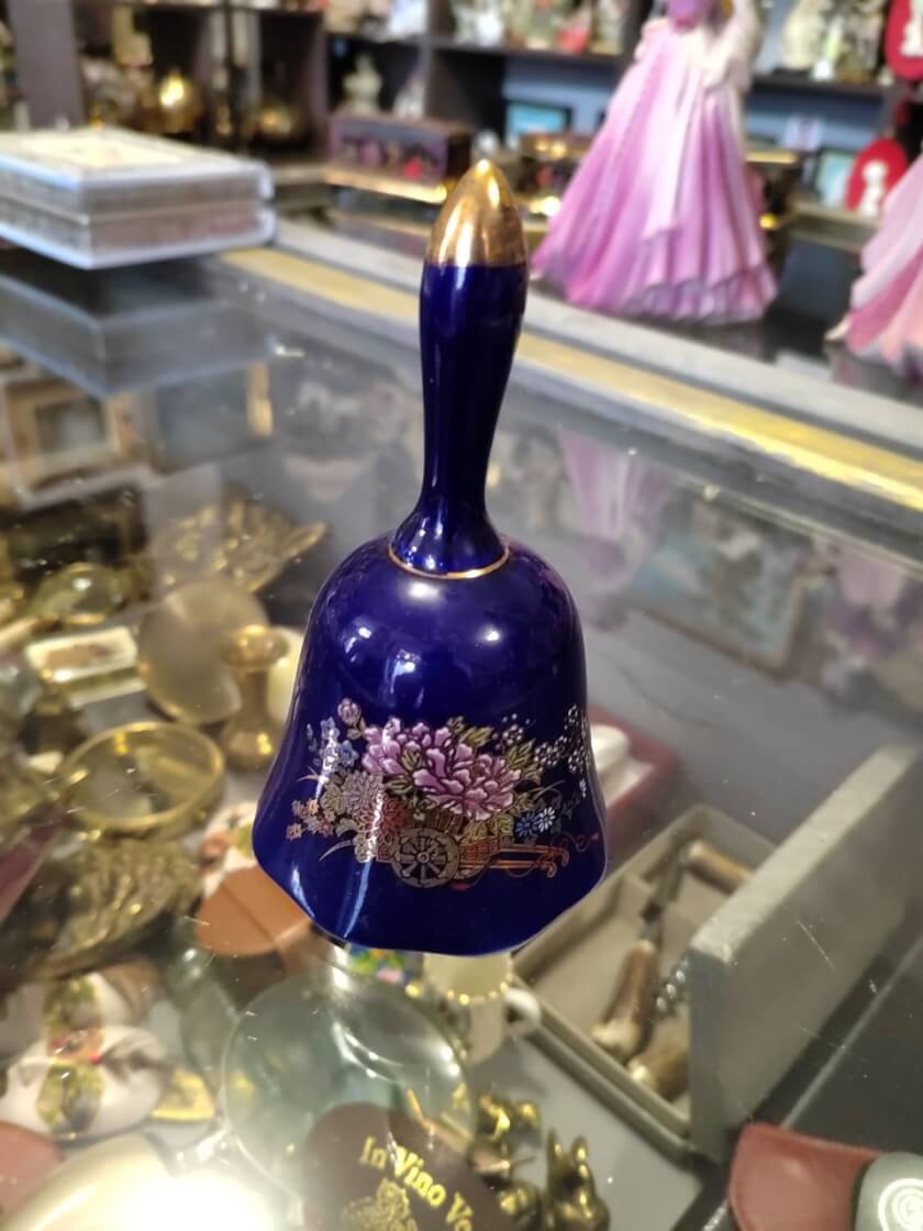 Винтажный колокольчик с ярким изображением пестрых цветов. Создан из костяного фарфора в середине 20 века. Произведен в Англии на мануфактуре. Оформлен кобальтом и позолотой. Сохранился в прекрасном состоянии, без сколов и трещин. Станет интересным элементом декора интерьера или частью коллекции. Все лоты выставлены на нескольких площадках поэтому, пожалуйста, перед покупкой уточняйте наличие.