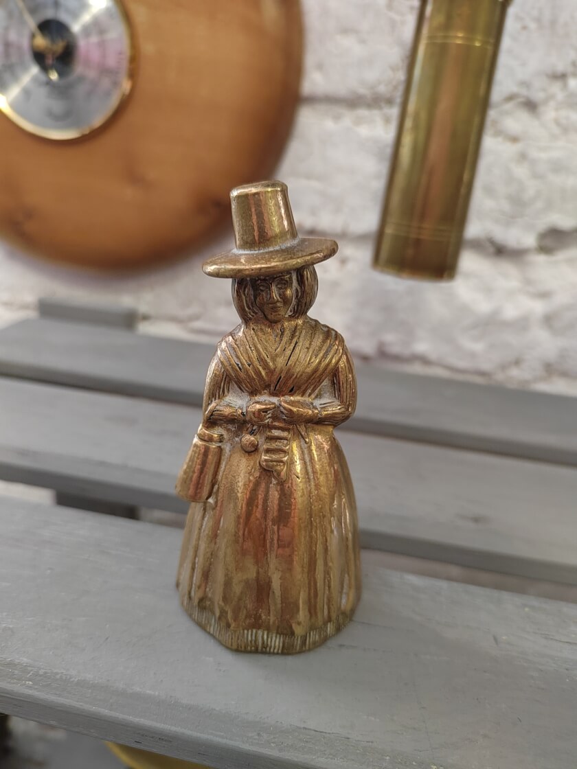Антикварный коллекционный подзывной колокольчик. Создан в начале 20 века в Европе. Отлит из бронзы. Оформлен в виде женщины-вязальщицы в широкой шляпе с пряжей в руках. Сохранился в прекрасном состоянии. Звенит. Настольный вызывной колокольчик использовался для вызова слуг в домах знати, чтобы хозяйке не приходилось кричать, если что-то понадобится. Был широко распространен в высшем свете. Великолепный, редкий коллекционный экземпляр. Может использоваться по назначению или стать частью коллекции.