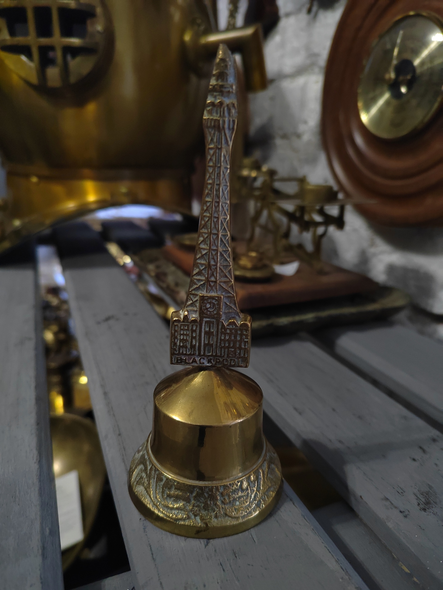 Антикварный коллекционный подзывной колокольчик. Создан в 20 веке в Англии, отлит из латуни. Оформлен в виде высокой башни английского города Blackpool. Колокольчик сохранился в прекрасном состоянии. Настольный вызывной колокольчик использовался для вызова слуг в домах знати, чтобы хозяйке не приходилось кричать, если что-то понадобится. Был широко распространен в высшем свете. Великолепный, редкий коллекционный экземпляр. Может использоваться по назначению или стать частью коллекции. Все лоты выставлены на нескольких площадках поэтому, пожалуйста, перед покупкой уточняйте наличие.