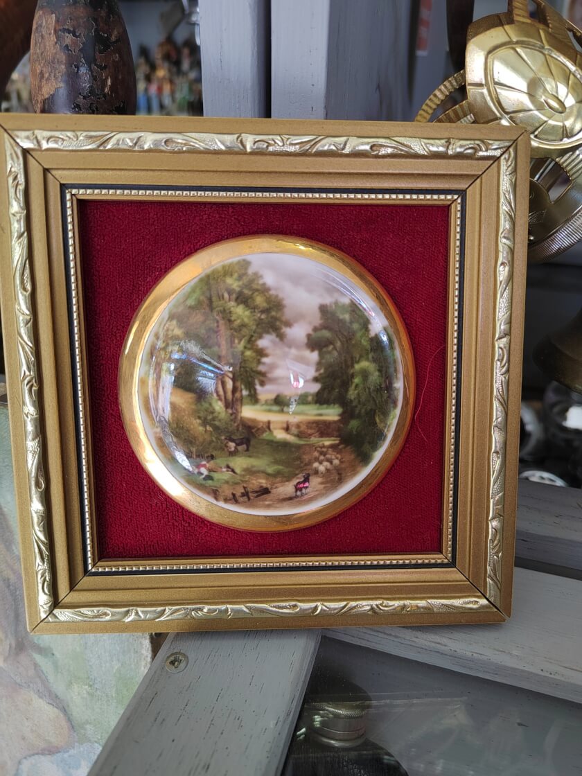 Винтажная декоративная плакетка с изображением деревенского пейзажа. Произведена из костяного фарфора в 1980-х годах. Создана в Англии на мануфактуре Countess. Стоит клеймо от производителя. Оригинальный рисунок нанесён техникой деколь. Плакетка сохранилась в прекрасном состоянии, без сколов и трещин. Обрамлена в раму. Станет интересным элементом декора интерьера или частью коллекции. Все лоты выставлены на нескольких площадках поэтому, пожалуйста, перед покупкой уточняйте наличие.