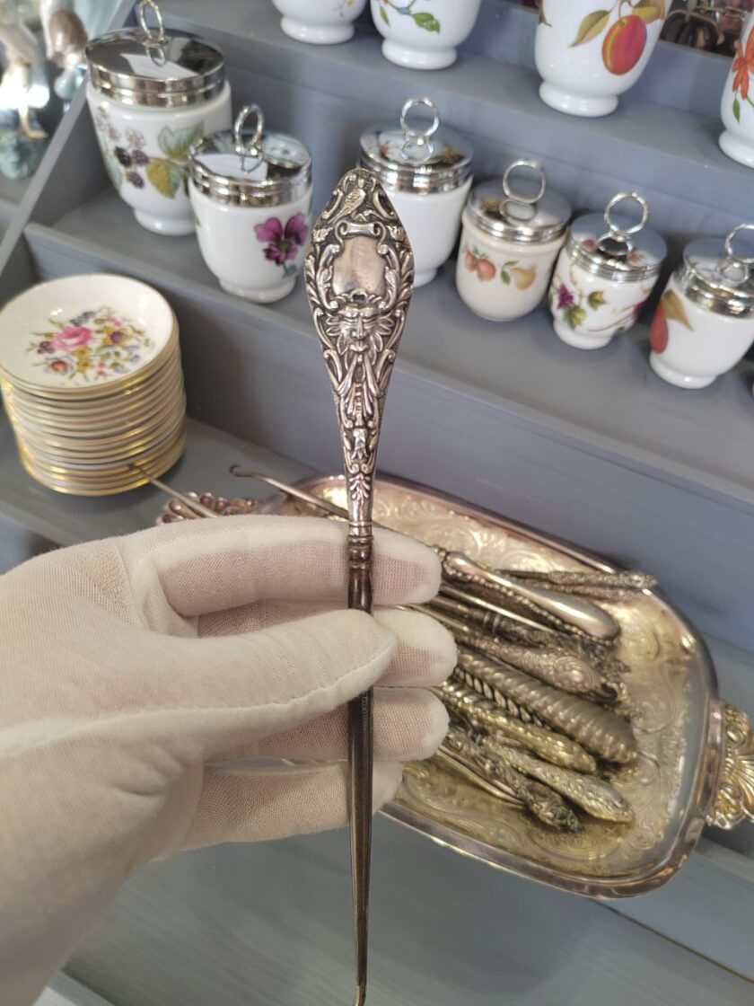 Антикварный крючок для затягивания и растегивания корсетов и пуговиц. Произведен в Англии в конце 19 века. Создан из стерлингового серебра. Стоят клейма от производителя. Оформлен в Викторианском стиле с объемными витиеватыми узорами. Предназначен для удобства в обращении с маленькими и тонкими петельками. Сохранился в прекрасном состоянии. Может активно использоваться в быту по назначению или в декоративных и коллекционных целях. Все лоты выставлены на нескольких площадках поэтому, пожалуйста, перед покупкой уточняйте наличие.