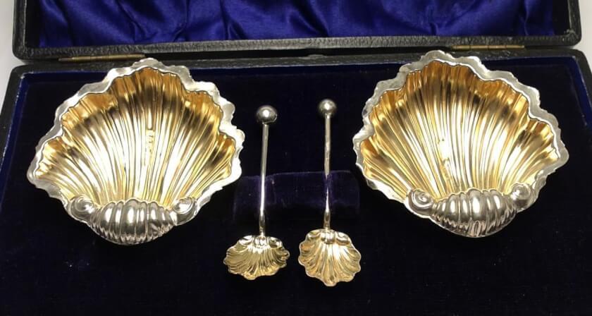 Старинная Пара Солонок с ложками Стерлинг. Серебро