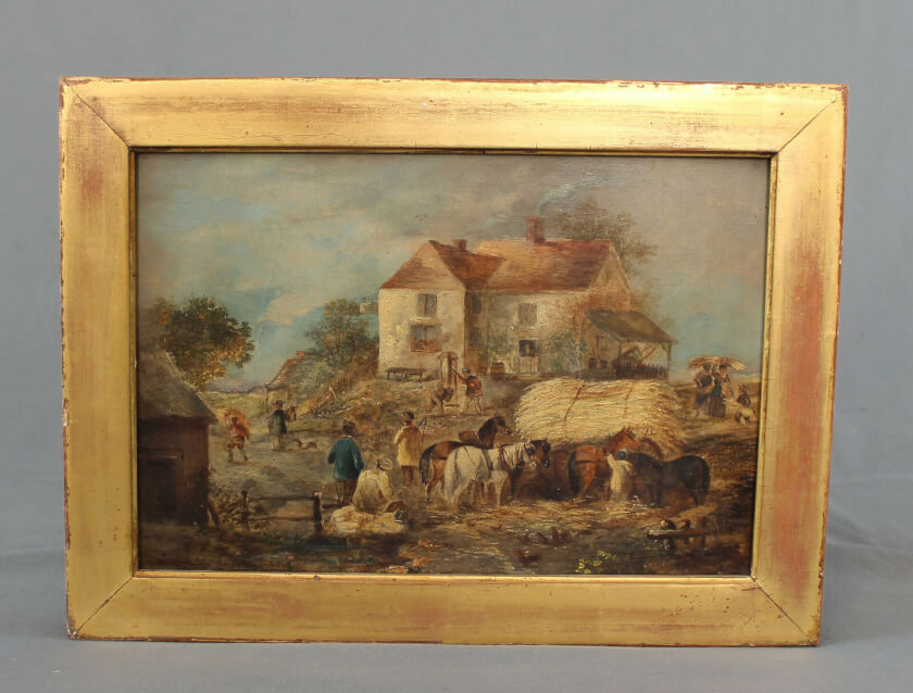 Великолепная картина второй половины 19 века. Носит название «Деревенская Гостиница». Написана маслом на холсте художником Уолтерсом. Подпись создателя находится внизу справа. На холсте представлен большой деревенский постоялый двор двухэтажной гостиницы, на котором отдыхают от дороги путешественники и лошади, а работники гостиницы хлопочут вокруг. Картина сохранилась в прекрасном состоянии. Обрамлена в позолоченную раму английского производства. Станет интересным элементом декора комнаты или статусным подарком для любителя живописи. Размер по раме: 29см × 39см.